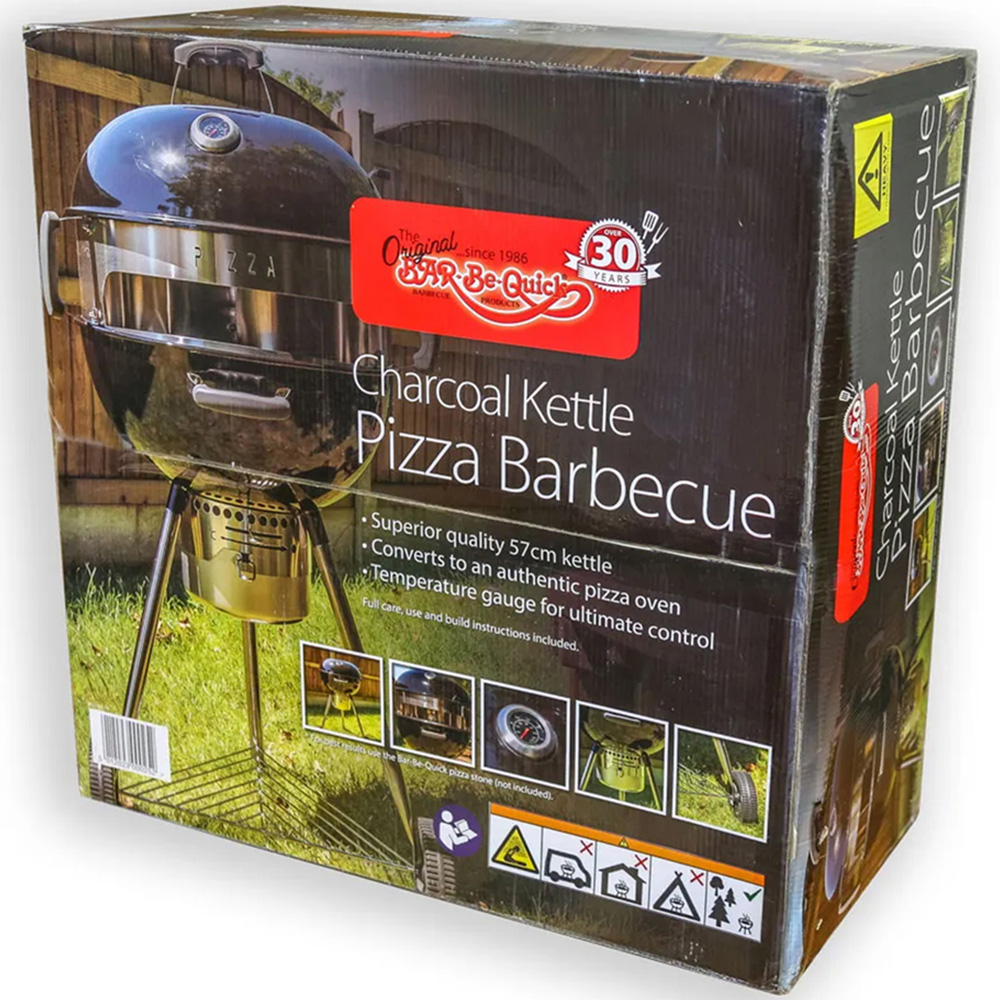The Bar-Be-Quick Charcoal Barbecue Pizza Kettle allows for easy conversion of the grill into an authentic pizza oven. The built-in temperature gauge provides ultimate control over cooking, ensuring perfect results every time. It comes complete with a full family-sized 57cm barbecue grill and a pizza conversion ring.