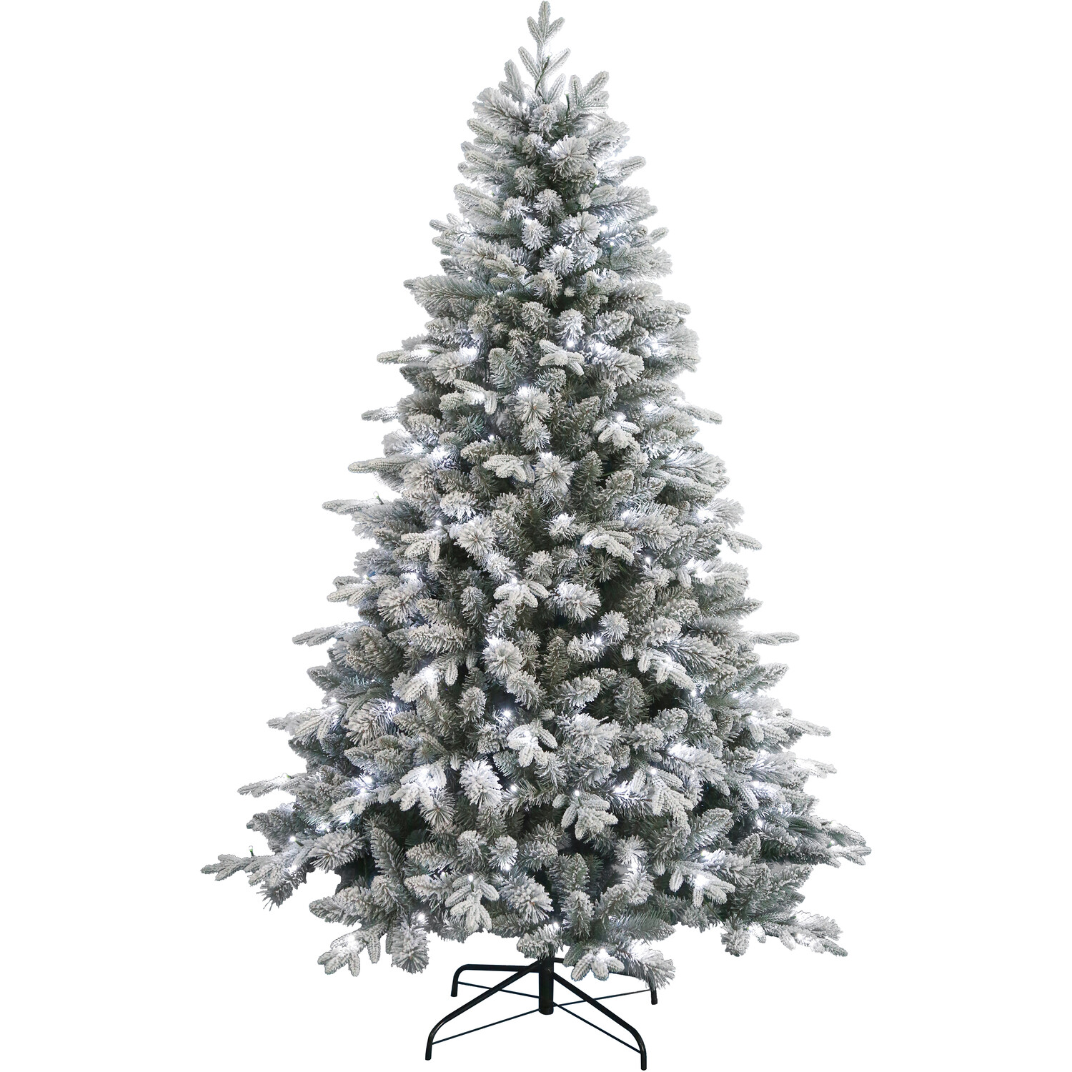 Create a magical festive atmosphere in your home with the Baroness Pre Lit Tree 6.5ft. Flaunting a flocked design, this lush Christmas tree features hinged branches and over 1660 tips to offer a realistic look. It's further adorned with 240 LEDs to illuminate your space with a cool white light, making it a perfect addition to any home.