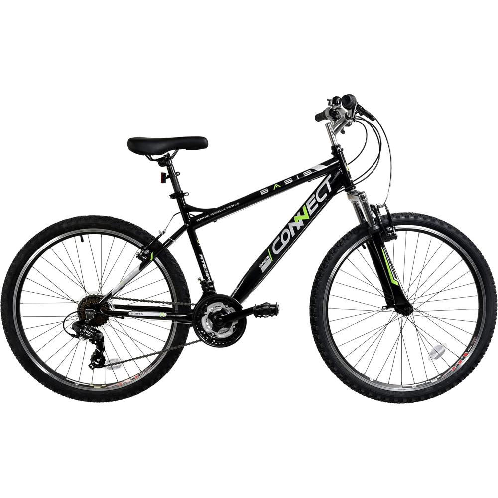 Designed to tick the box of a beginner friendly, yet well equipped Mountain Bike, the Connect boasts a rugged Steel crossbar frame and 26" suspension forks to achieve a comfortable and responsive riding feel. Whether intended for leisurely, perhaps rural rides, or as a foot in the door to the world of Mountain Bike, Connect's generous 18 speed Shimano Tourney gearing system and responsive yet simplistic V-Brakes make this a great means of gaining experience with gearing, or on stubborn terrain.