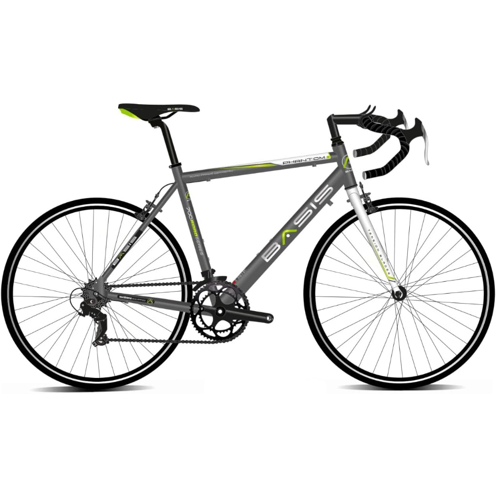 Brand New from our home-baked Basis brand. A lightweight Alloy frame and 14 speed Shimano gearing set this aside from the rest in it's peripheral price range. Road cycling is possibly the most energy efficient, fast paced form of cycling there is. Their aerodynamic design and slender aesthetic allow you to split through the headwind and maintain the pace you've grafted to gain, while the combination of larger 700c wheels and slim, 120psi capable tyres minimise rolling resistance. The Basis Phantom Road Bike has been designed with these core characteristics in mind, forgetting the expensive and somewhat un-necessary bells & whistles to result in an affordable and we equipped bicycle. Based around a lightweight yet robust Alloy road frame and tapered Steel fork, rolling on 700c Alloy wheels and 25c tyres to achieve that rigid, direct and confidence aspiring riding feel. Dallingridge have included an 14 speed Shimano gearing system with centre mounted SIS shifters, broadening the bikes, and indeed, rider's capability should it come to a stubborn ascent or aggressive descent. Braking is taken care of by a traditional, simplistic calliper system with authentic drop-bar levers. It may not podium the Tour De France, but those daily commuters looking for pace and efficiency will really reap it's benefits.
