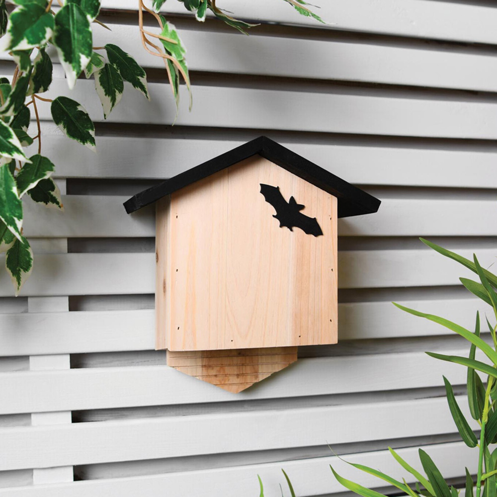 This charming Bat Box features a black roof and bat-shaped design, making it an attractive and functional addition to your outside space or garden. Perfect for providing shelter, this bat box will help encourage insect population control and pollination whilst providing a safe place for local bats.