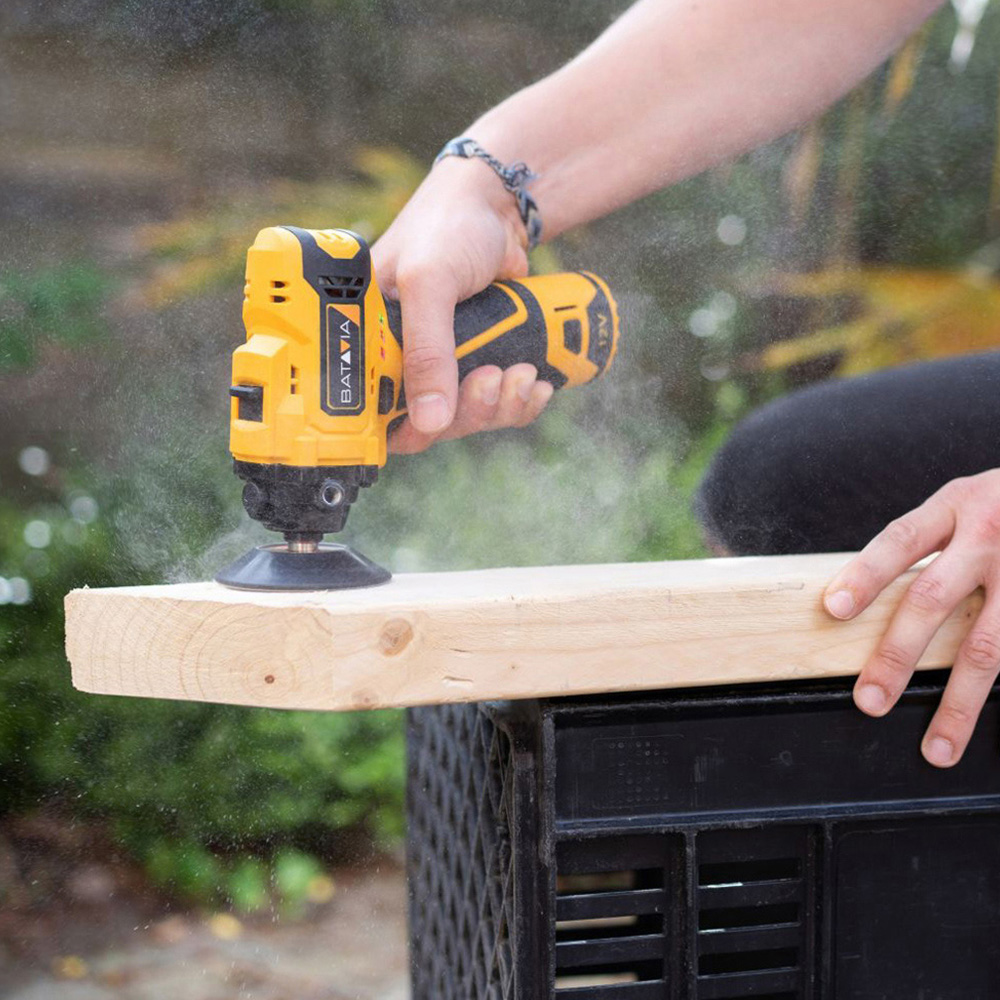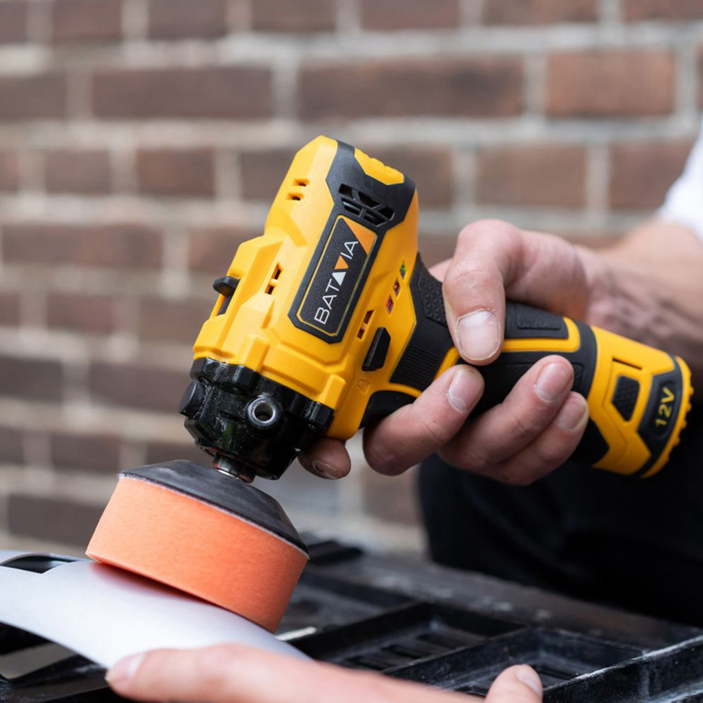 Optimise your sanding and polishing projects with the Batavia FIXXPACK Sander 75mm. Cg=hanging pads or sandpaper is a breeze with the hook and loop fastener strap connection, and the spindle lock makes switching the polishing plate simple too. Designed for ease of use, this sander and polisher can be operated with one hand. For added control and precision, attach the second handle to achieve better results. Specifications: No Load Speed: 0-2,600/0-7,800/min. Sanding/Polishing Diameter: 75mm. Weight: 0.79kg. Please note: This unit does not include a battery and charger.