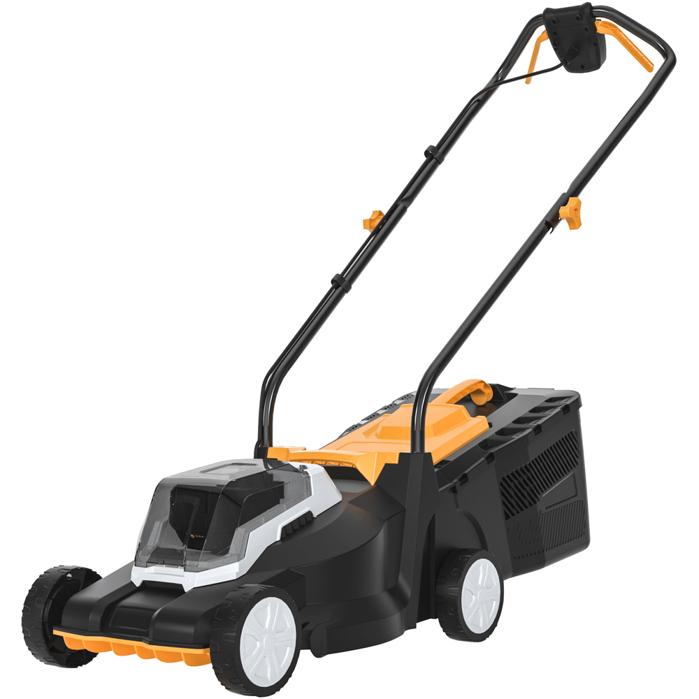 Mow smarter, not harder with the Batavia MAXXPACK BAT7064713 32cm Electric Lawn Mower. Its patented mowing assistant boosts your mowing efficiency by up to 40 per cent, allowing you to mow your lawn quickly and easily. Enjoy unrestricted manoeuvrability with the cordless operation. Maintain a clean, even cut with the 32cm cutting width. Choose from 30 to 60mm height settings as per your convenience. The lawn-friendly wheels ensure smooth rolling without damaging your grass. The mulching function transforms grass clippings into nutrient-rich mulch, adding valuable nutrients to your soil. Find your perfect moving posture with the adjustable folding handle that allows for compact storage. Specifications: No Load Speed: 3800/min. Cutting Width: 32cm. Cutting Height Adjustment: 3 Stages, 30-60mm. Collection Capacity: 25 litres. Weight: 7.835kg. Please note: This unit does not include a battery and charger.