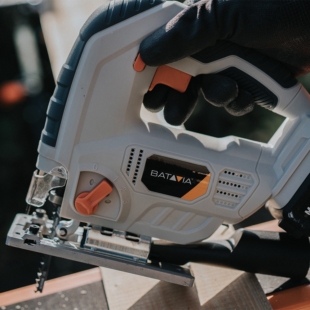 The Batavia MAXXPACK Jigsaw is equipped with a bottom plate that can be adjusted in degrees. This allows you to see at an angle of -45° to 45°. It has four pendulum positions for fast straight cutting and precise curves. An integrated parallel guide provides maximum control and accuracy. The compact, lightweight design provides optimal manoeuvrability while fitted with a soft grip handle for comfortable sawing. Change the saw blade quickly and easily without tools. There is also an adjustable suction and blowing system for dust-free work. The unit comes as a bare unit with no battery or charger supplied. Specification: Strokes at No Load: 0-3000/min. Base Plate Angle: -45° to 45°. Cutting depth wood: 80mm. Cutting depth metal: 6mm. Cutting depth plastic: 12mm. Sound pressure level LpA: 85.9 dB(A). Battery: 1.5kg.