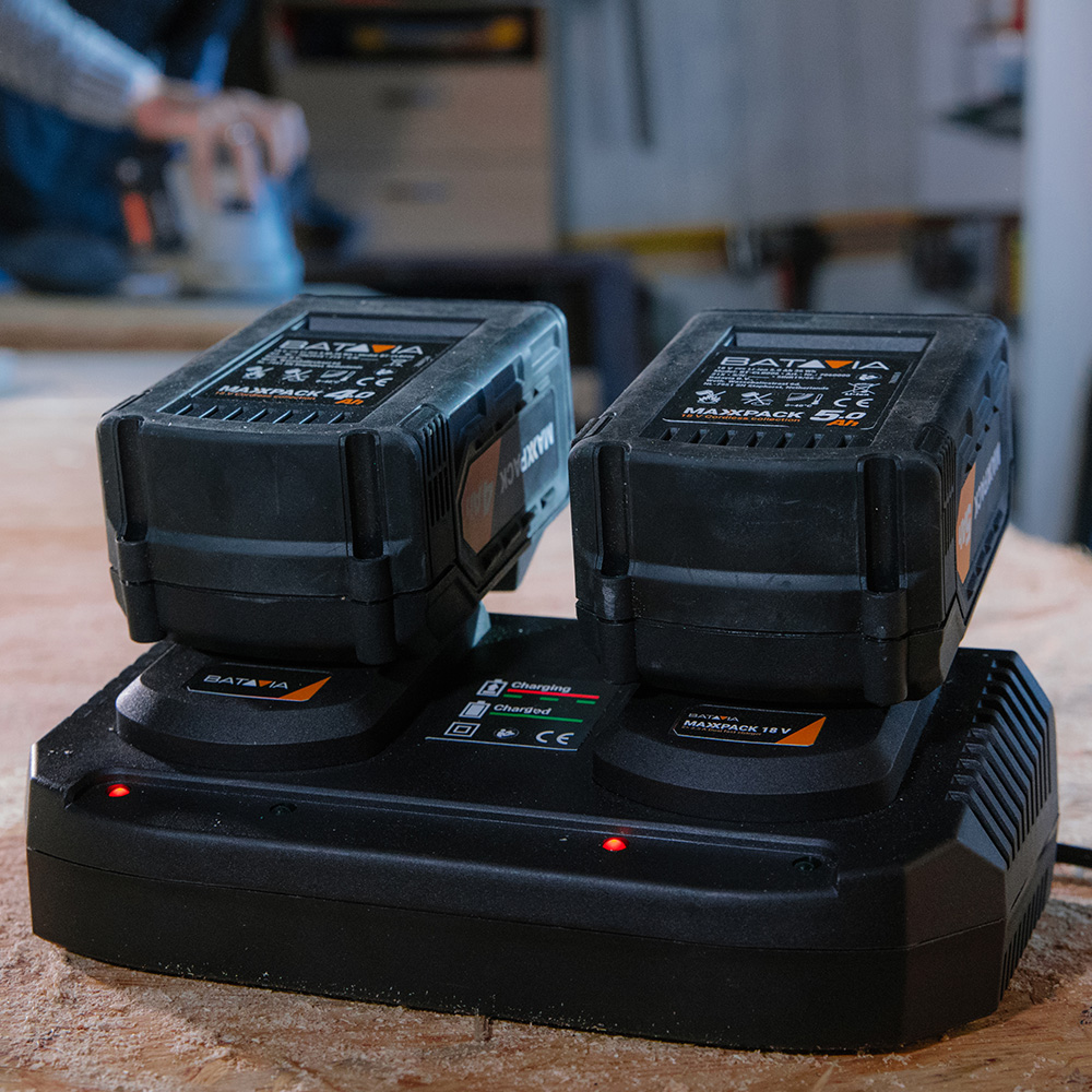 Keep your MAXXPACK devices charged with this Batavia MAXXPACK Li-ion Dual Charger 240V. Designed with convenience in mind, It allows you to charge two batteries at once. This way you never have to wait again for the first battery to be fully charged before you can charge your second battery. Suitable for all 18V MAXXPACK Li-ion batteries, it's perfect for keeping your devices ready to use.