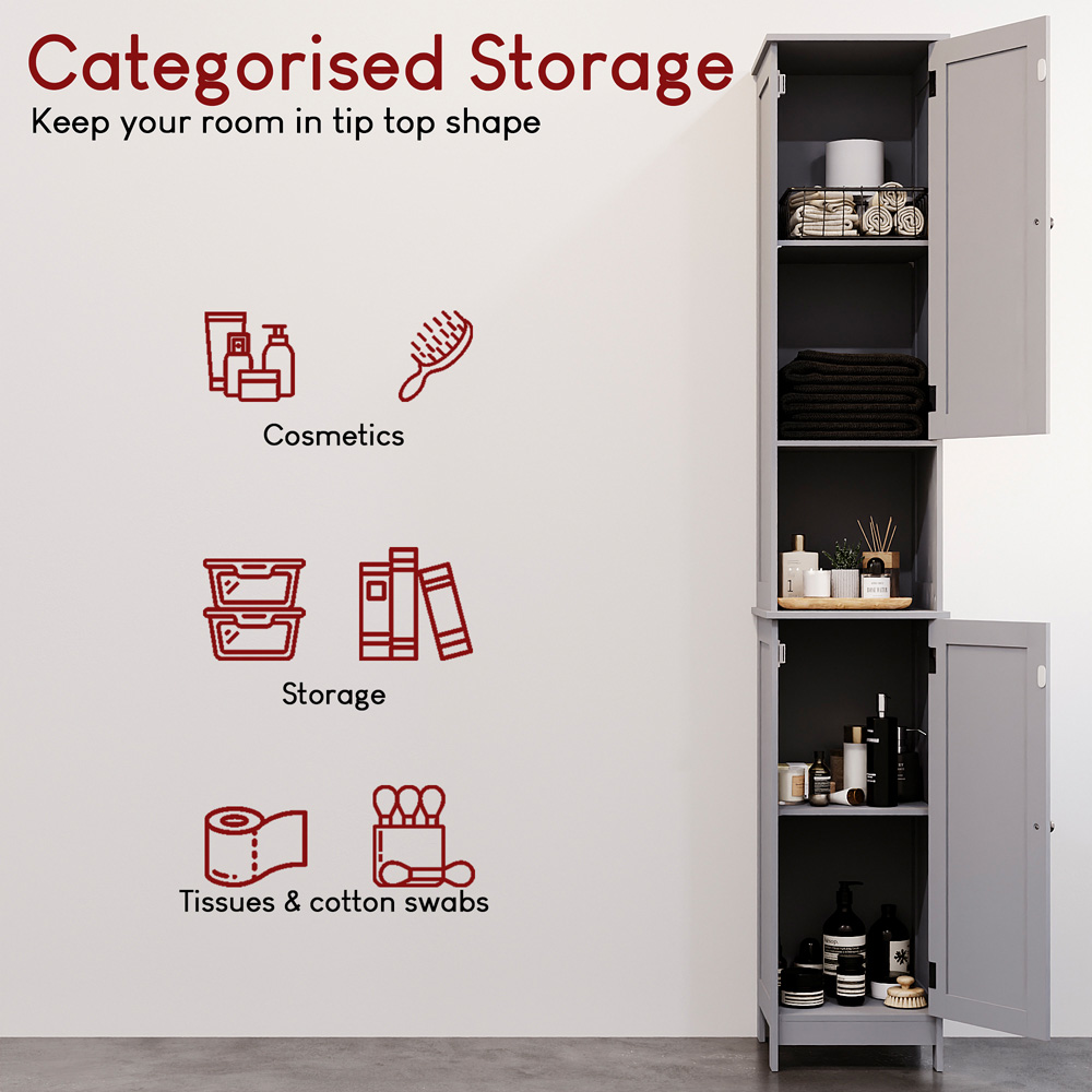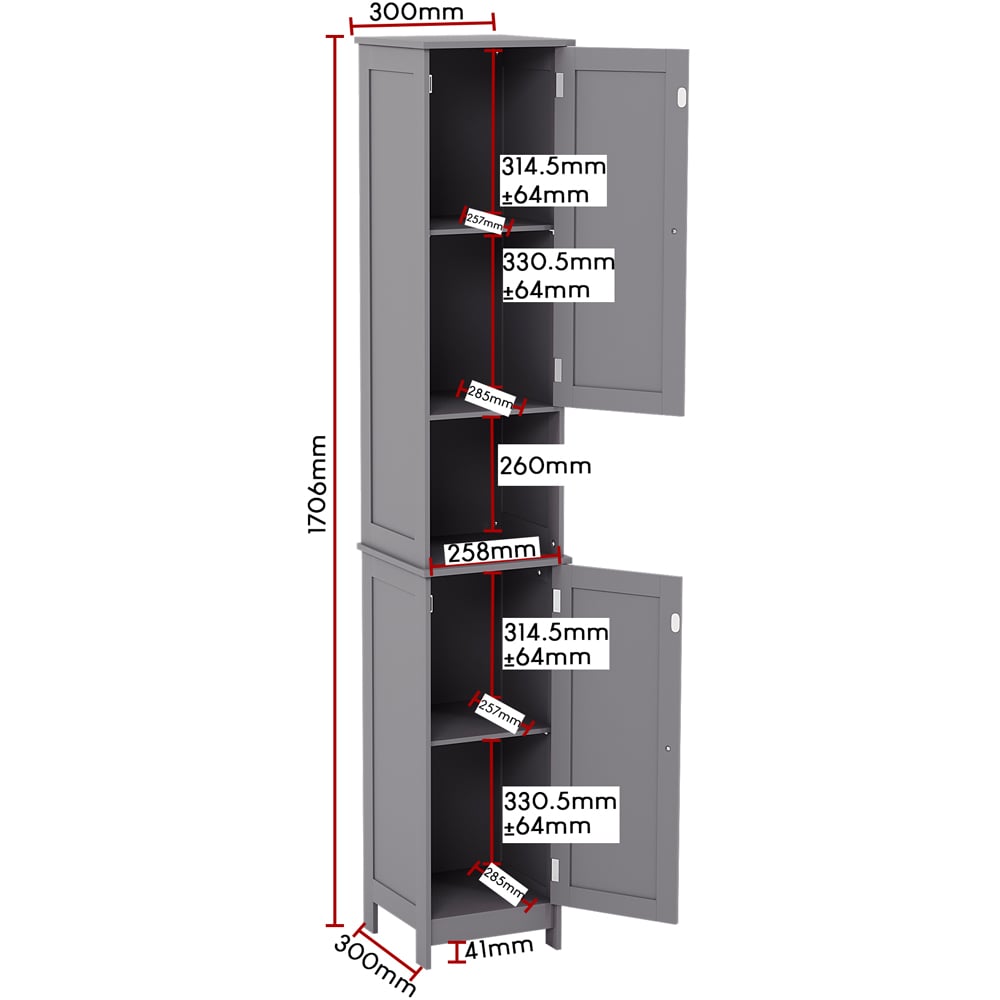 The Priano 2-door bathroom tall cabinet is a versatile and stylish storage solution for any modern bathroom. Constructed from durable MDF and finished with a sleek, clean paint, this cabinet combines durability with a contemporary aesthetic. The cabinet features two doors and an open shelf in between, offering ample storage space for bathroom accessories such as towels, shampoos, soaps and more. The doors provide discreet storage for items you prefer to keep out of sight, while the open shelf offers easy access to frequently used products. Additionally, the top surface of the cabinet can be utilized for extra storage or as a display area for your favourite air scents, enhancing both the functionality and decor of your bathroom.