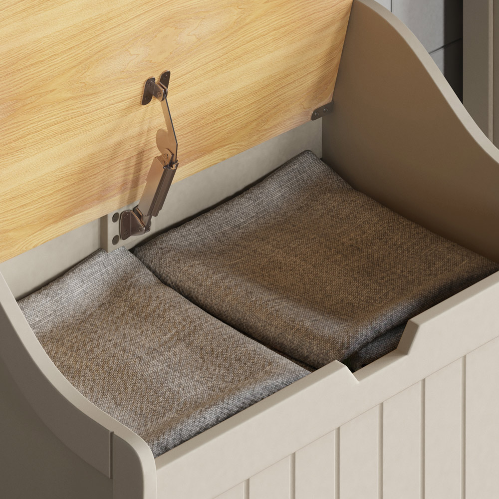Keep your laundry room or bedroom organised with Bath Vida Priano Grey Laundry Chest. This chest is made from high-quality MDF and features a beautiful grey finish that will complement any decor. It provides ample space for folding laundry or displaying decorative items. The chest opens to reveal a spacious compartment for storing clothes, linens, or other household items. It can be used in a variety of settings, from laundry rooms to bedrooms to living rooms. Easy to assemble - it makes for a great choice for anyone looking for a practical and attractive storage solution.