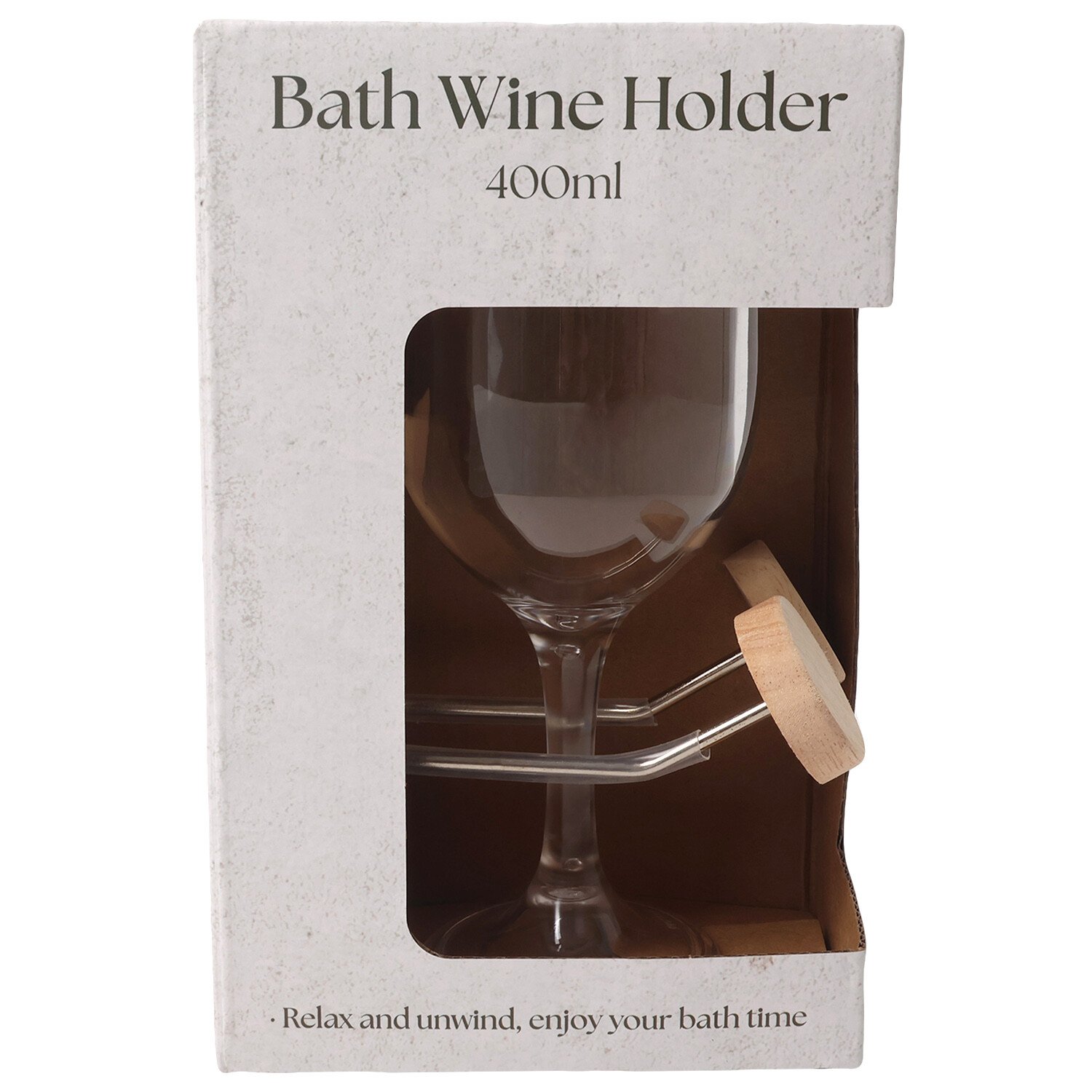 Enjoy unwinding in the bath with a glass of wine with this Bath Wine Holder 400ml. Designed with a sturdy suction cup base, it keeps your wine safe and within easy reach while you relax. Its sleek design complements any bathroom decor and is easy to clean, making it a convenient and sophisticated addition to your bath-time routine.