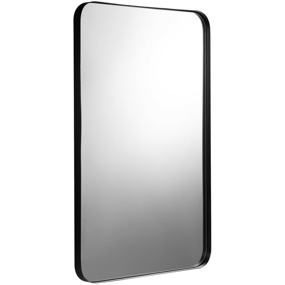 Enhance your space with the sleek elegance of the Costway Black Bathroom Wall Mirror with Rounded Corner. It is designed to blend seamlessly into any washroom setting. Crafted with a premium powder-coated metal frame, this mirror is resilient against humidity, making it an ideal choice for both steamy bathrooms and stylish living areas. Its large, high-resolution surface ensures a crystal-clear reflection of your beautiful face and fine attire, while the classic black colour and softened corners add a touch of sophistication. Whether mounted in your bathroom, living room, or hallway, this versatile mirror serves as both a functional piece and a decorative element. Installation is a breeze with durable keyholes that allow for vertical or horizontal hanging, ensuring this mirror not only meets but exceeds your everyday needs.
