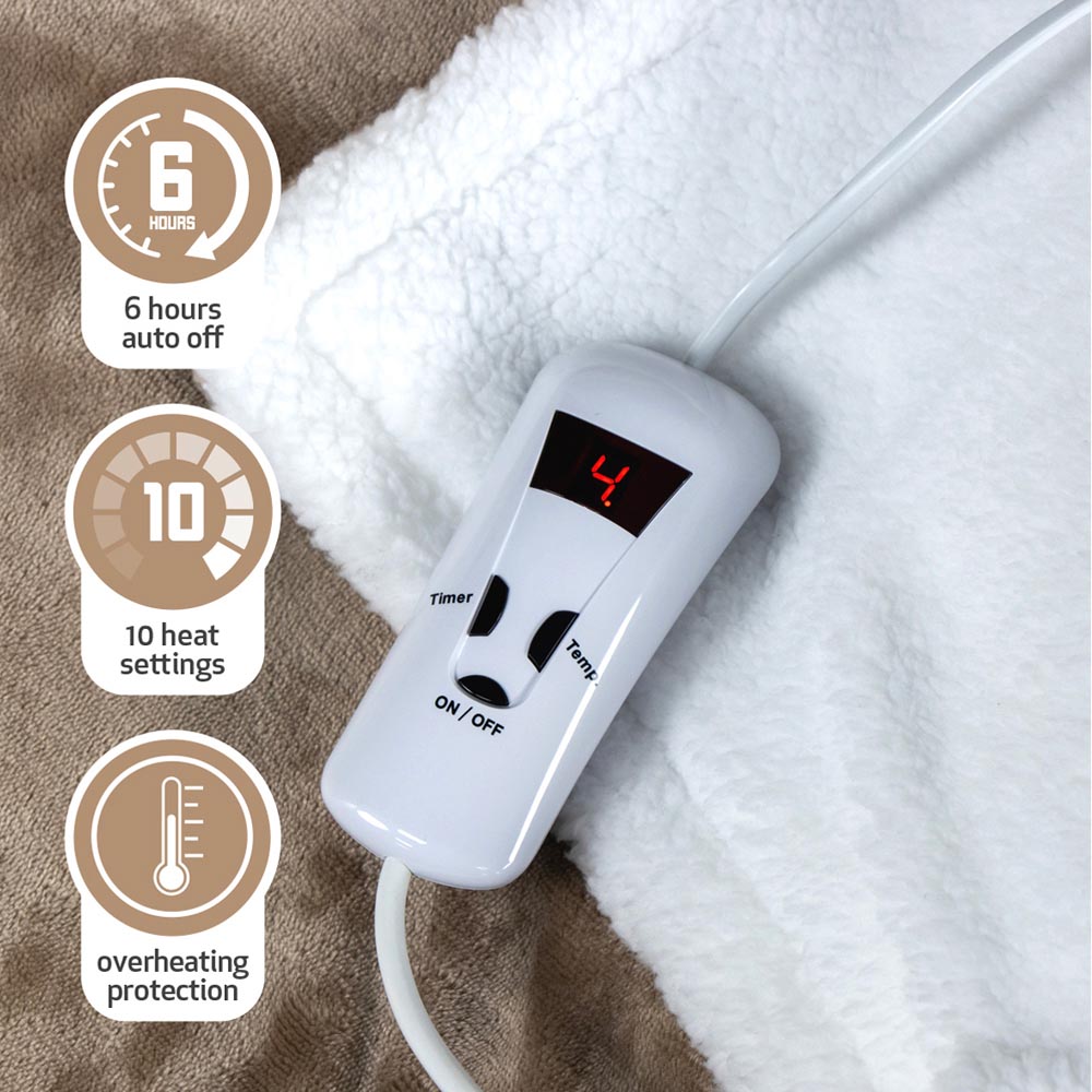 The Bauer Luxury Beige Soft Touch Heated Throw, measuring 120 x 160cm, is an exquisite choice for staying warm and comfortable during chilly winter nights. This heated throw offers ten different heating levels, enabling you to adjust the temperature according to your personal preferences. Its micro fleece outer and coral fleece inner provide a luxurious and cosy feel. Additionally, this blanket includes a timer function that allows you to set the heat for a duration of one to nine hours. It also features an energy-efficient auto-off timer that ensures safety by turning off the heat if it becomes too high. Moreover, this luxury throw offers the convenience of removing the digital controller, transforming it into a plain throw for use on the sofa or as a bedspread in the summer. This feature also makes the throw machine washable, allowing you to keep it fresh and extra snug.