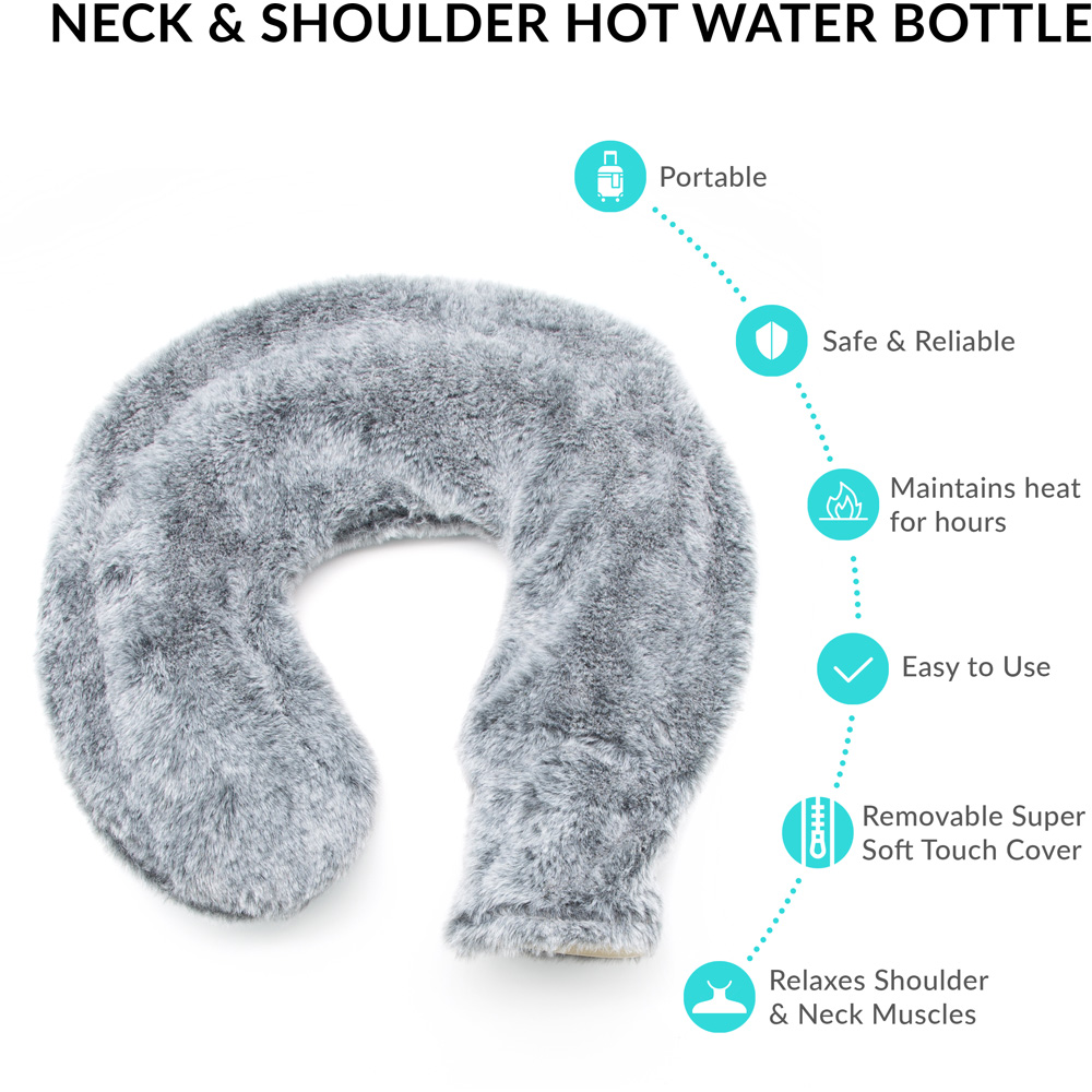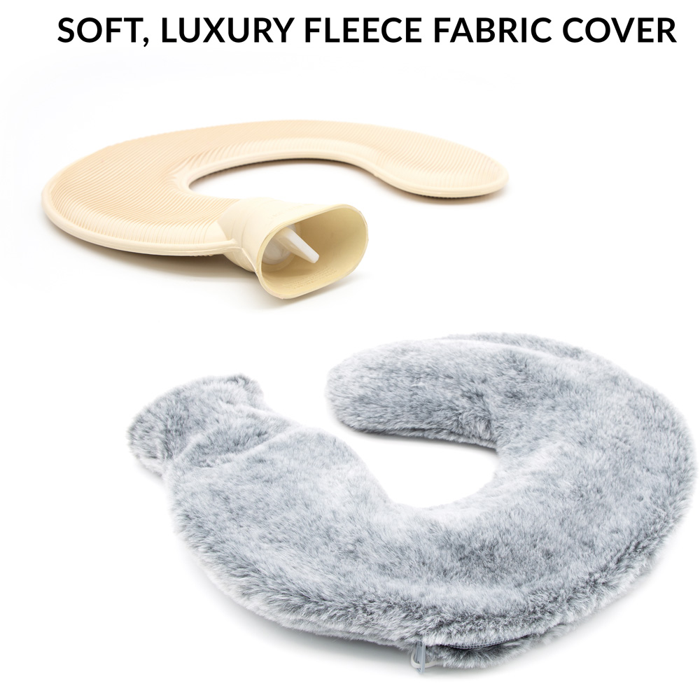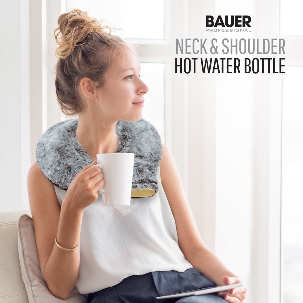 Relax after a stressful day with this Soft Fleece Neck Hot Water Bottle by Bauer Professional. This dark grey-coloured, super soft, curved hot water bottle is ideal for warming you up and helps you to de-stress and ease any aches and pains around the neck and shoulders. You can place the water bottle around your shoulders to provide prolonged, lasting, soothing heat to relieve tension while sitting back and relaxing. The hot water bottle has a super soft faux fur luxury fleece cover that can be removed and machine-washed. This hot water bottle can also soothe stress-induced headaches and help you regain calm and tranquillity.