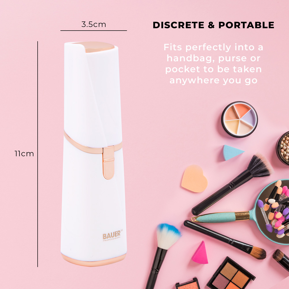 Get the smooth skin you always wished for with the Bauer Professional Hair Remover. This handheld facial hair remover for women is an easy-to-use multipurpose shaver suitable for all skin types that provides painless hair removal. This flawless facial hair remover is suitable for removing fine facial hairs and can also be used on arms, underarms, legs and bikini lines. It features a waterproof design adhering to IPX4 standards, making it suitable to be used in the shower. It also features a built-in LED light that can magnify the finest hairs making removal of stubborn facial hair even easier. The tip of this hair remover is detachable for effortless cleaning under a running tap or with a fine brush. It has a stylish and compact design that is portable and makes it perfect for carrying inside any bag of your choice. This hair remover is battery operated and requires 1 x AA battery (not included).