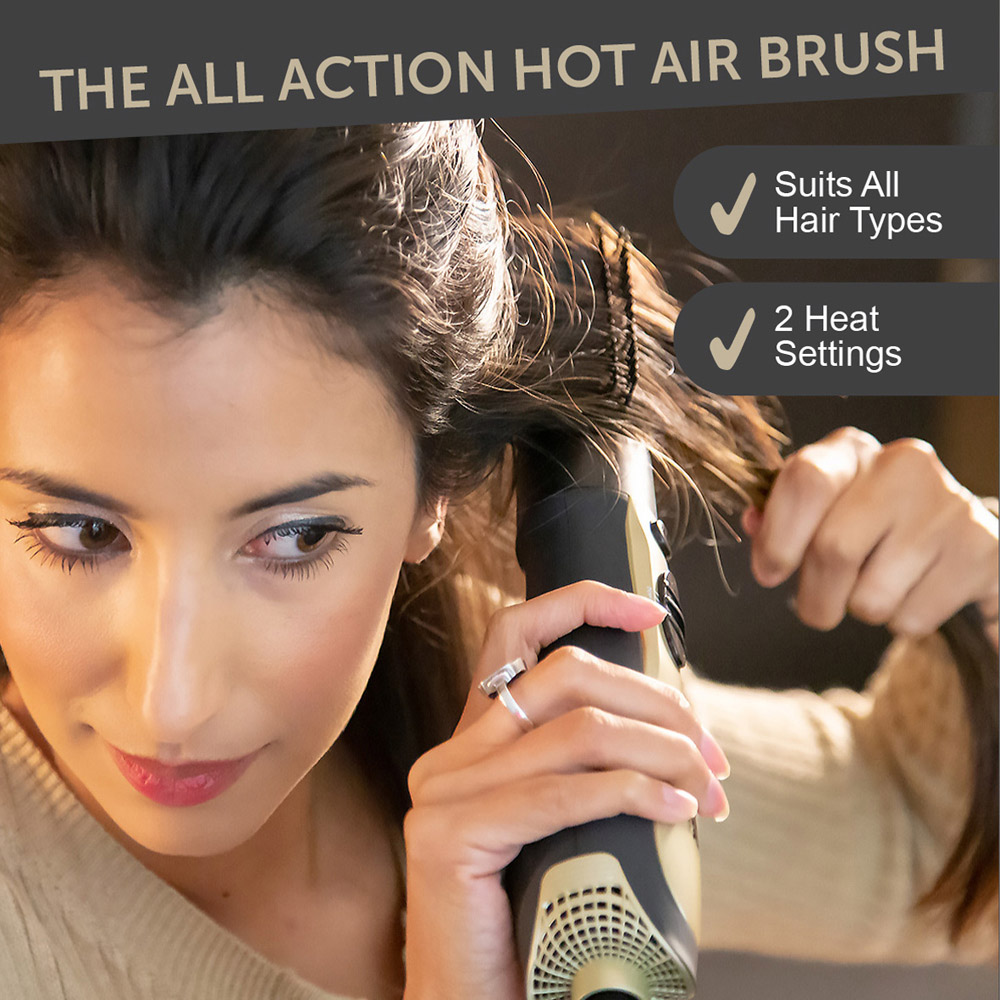 The Bauer Wet and Dry Styler is a versatile hair styling brush that combines the functionality of an electric hair dryer with the precision and control of a professional salon brush. With this innovative tool, you have complete control over how you want your hair to look every day. Equipped with two separate heat settings and a cool setting, this styling brush allows you to create a variety of hairstyles and is suitable for all hair types. The flexible power cord can rotate a full 360 degrees, ensuring effortless brushing or straightening in any direction. The bristles of this brush are made from nylon and remain cool to the touch, providing a comfortable and safe styling experience. Additionally, the brush is designed with a built-in hanging loop, allowing you to conveniently hang it after use without the risk of damaging surfaces. Cleaning and maintaining the brush is a breeze, thanks to its removable brush head. Experience the power and convenience of the styler, measuring 35.5 x 6 x 6cm, and achieve the perfect hairstyle with ease.