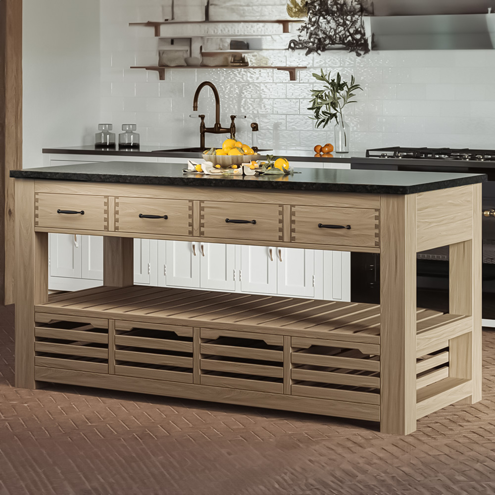 Enhance your kitchen in style with Baumhaus Kitchen Island 3 Drawer 2 Shelf Oak with Black Granite Top. This versatile piece of furniture is designed to provide extra worktop and storage space while complementing the modern aesthetics of any kitchen. Crafted from oak and featuring a sleek black granite top, this kitchen island exudes timeless elegance. The durable granite surface is not only resistant to stains but also heat-proof, making it the perfect workstation for passionate bakers. Whether you're kneading dough or rolling out pastry. For added convenience, the Oak Kitchen Island comes with lockable castors, enabling you to effortlessly move it around to suit your needs. It is delivered fully assembled for your convenience. With overall dimensions of H90cm x W180cm x D73cm, this freestanding island offers ample workspace without compromising on floor space. Whether you're preparing elaborate meals or enjoying casual breakfasts with family, the Oak Kitchen Island With Two Drawers And Black Granite Top is sure to elevate your kitchen experience.