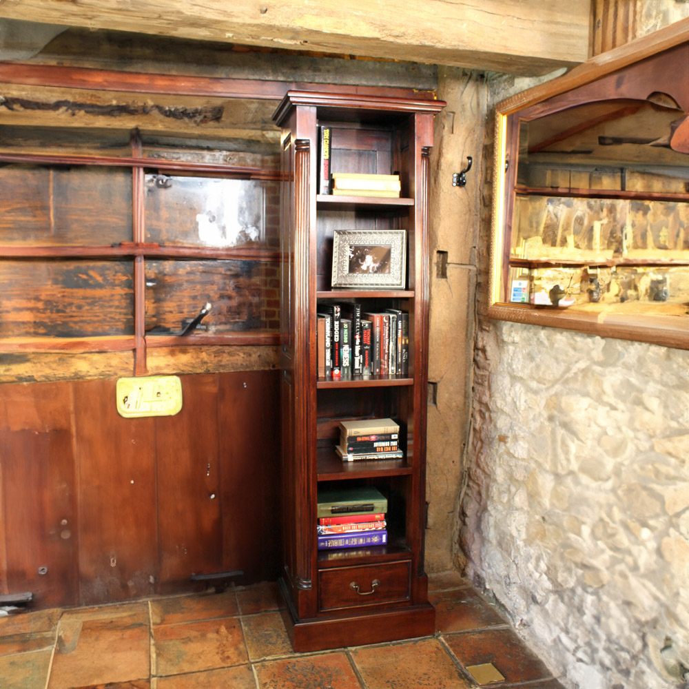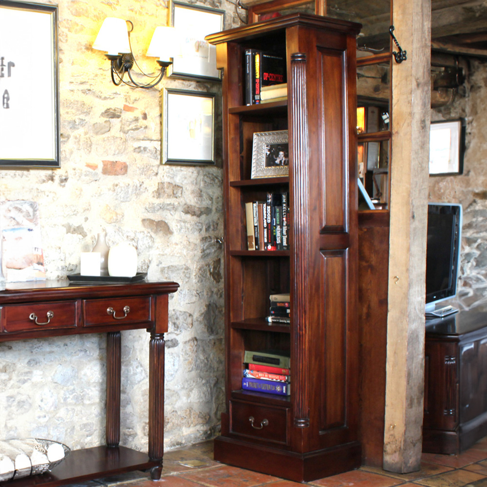 Transform your home's decor and organise your space with this Baumhaus La Roque 4 Shelf Mahogany Narrow Alcove Bookcase. Crafted from solid mahogany for sturdiness and flaunts a rich mahogany shade you'll love. It's adorned with handcrafted fluted sides, nylon feet, and a mid-gloss lacquer finish to add a touch of charm to your space. This narrow open bookcase features four adjustable shelves that offer ample storage space so you can store your books and display your favourite items easily. Classic yet contemporary, with this low-maintenance piece, you can enhance your living space decor effortlessly.