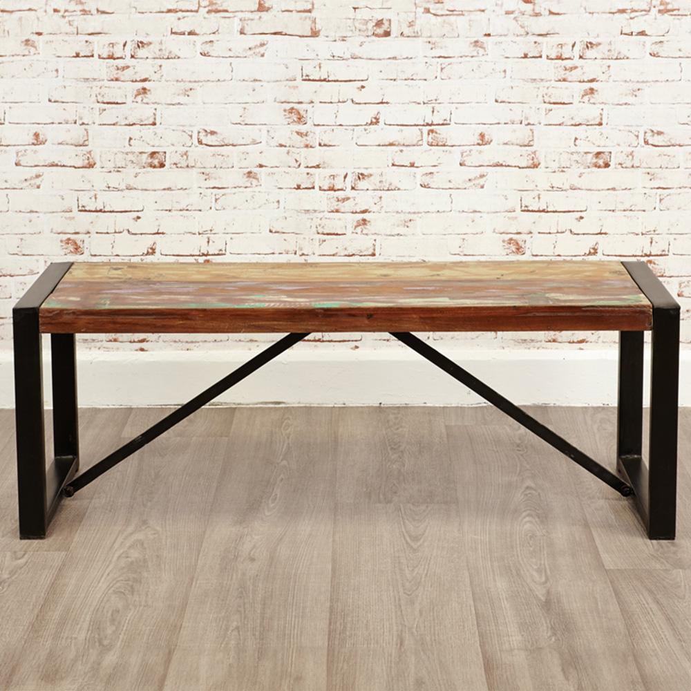 Redesign your space uniquely with the Baumhaus Urban Chic 2 Seater Dining Bench. Crafted from carefully reclaimed wood sourced from old buildings in southern India, this piece embodies both history and durability. Its robust steel outer frame ensures stability and strength, while the natural grain and rich colour of the wood are accentuated by a protective satin lacquer, leaving a glossy finish that stands the test of time.