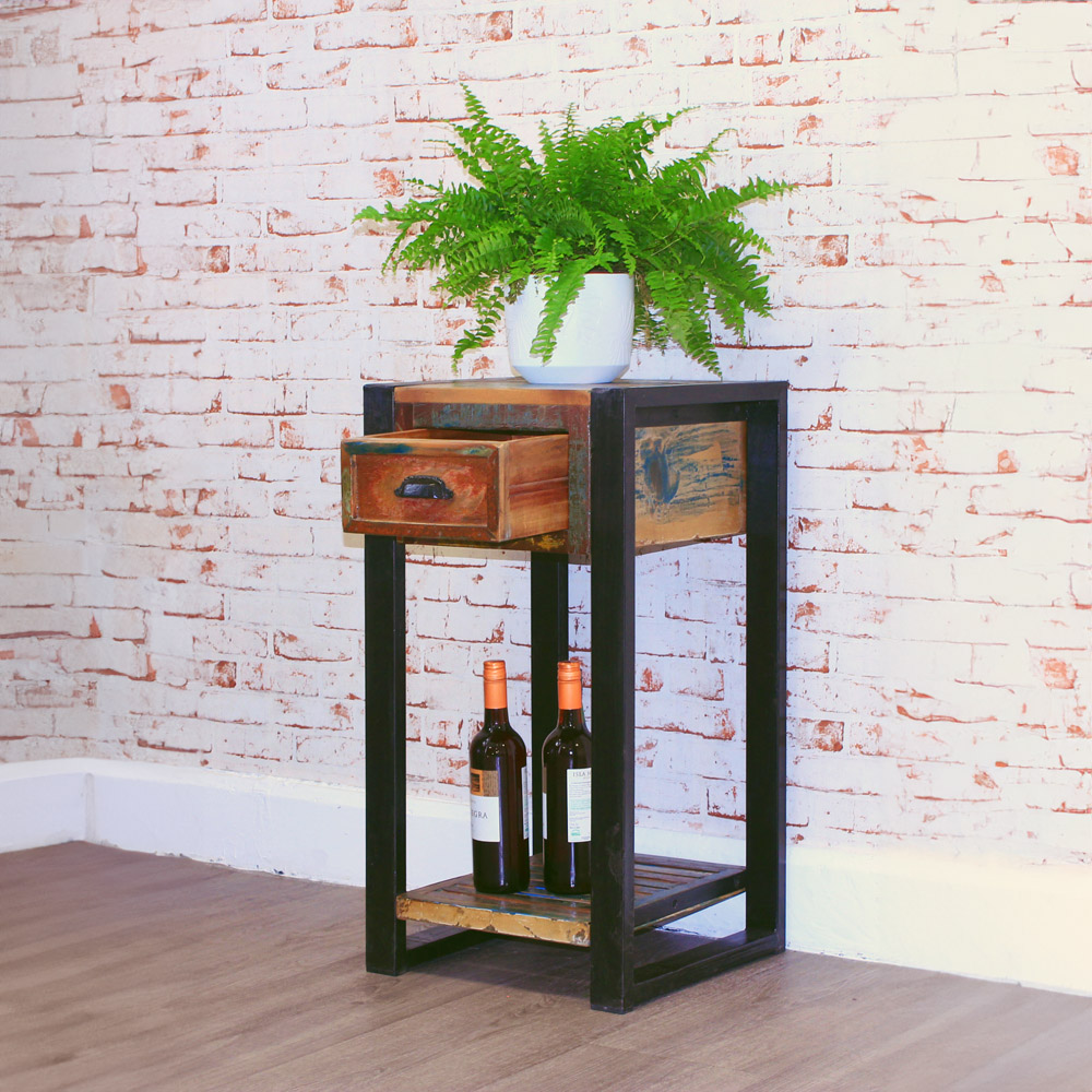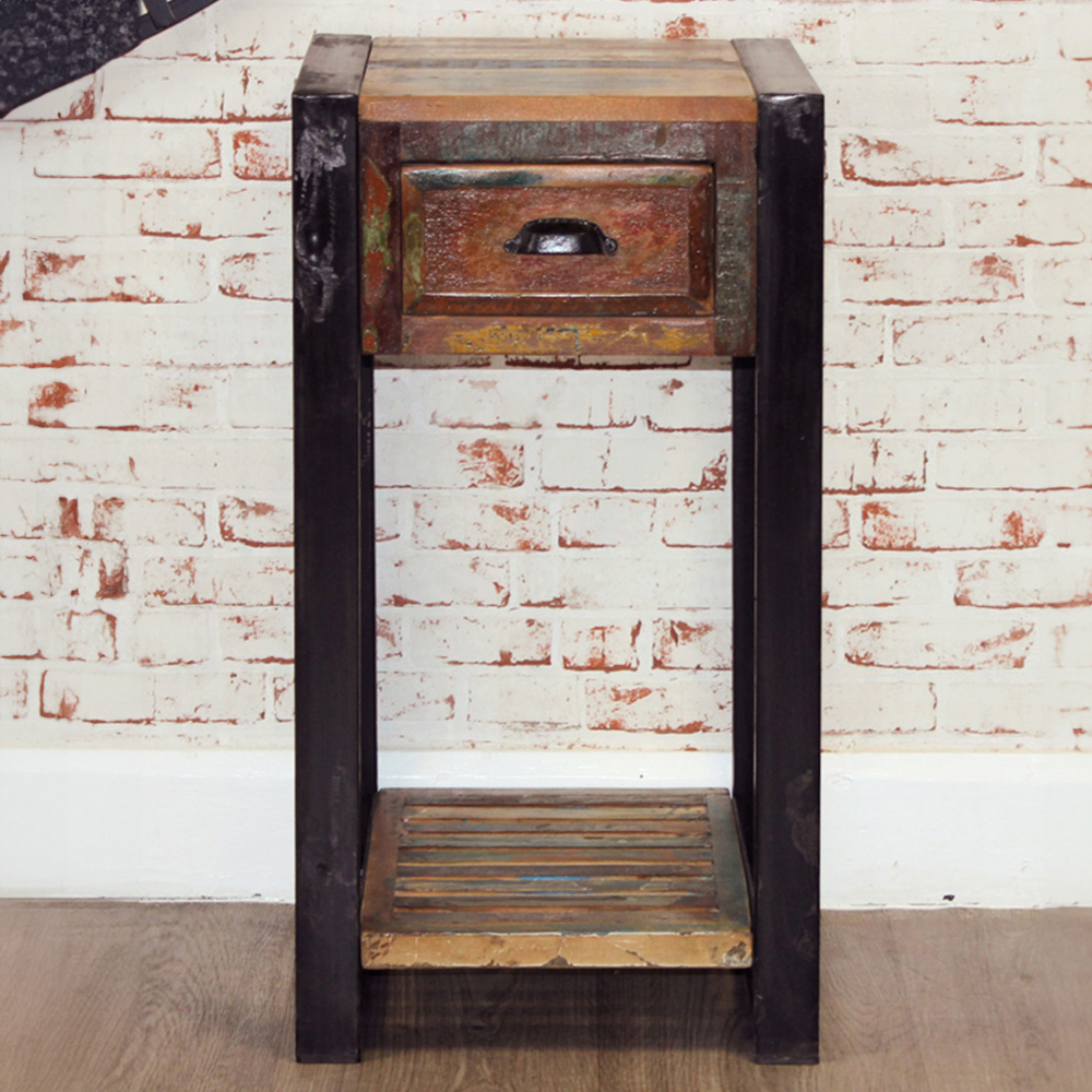 Redesign your space uniquely with the Baumhaus Urban Chic Single Drawer Single Shelf Lamp Table. This beautiful piece showcases exceptional artistry, created from carefully selected reclaimed wood originating from India. It features a spacious drawer and a single open shelf. Its distinct, eco-friendly charm is enhanced by a vibrant, multicoloured finish, making it an eye-catching centrepiece for any living room. The sturdy signature steel frame guarantees longevity, while the resilient satin lacquer finish highlights the reclaimed wood's rich hues, making it an ideal addition to any space. Whether you desire a striking focal point or a complementary accent, this piece is crafted to leave a lasting impression.