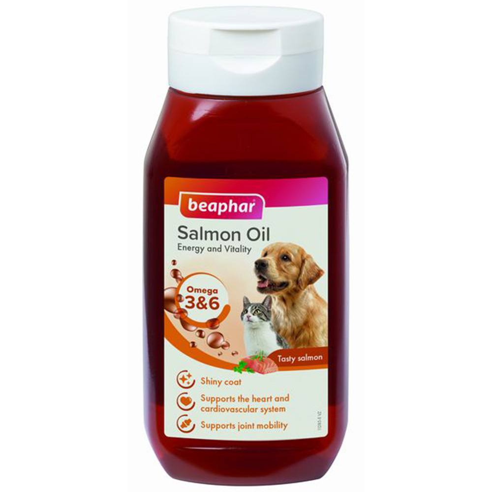 Beaphar Salmon Oil is a delicious natural supplement suitable for dogs and cats that can just simply be added to their food. Derived from sustainable fisheries, it is naturally rich in omega-6 and omega- 3 oils, which means it is a good source of essential fatty acids like EPA and DHA. The health benefits of such nutrients are widely recognised. With regular use, it will help your pet maintain a healthy skin condition, free from itchy, flaky patches. It will also help your pet naturally develop a thick, lustrous coat. Some pet owners also find it a good way of increasing the palatability of their pet's normal dry food. Always read full list of instructions before use.