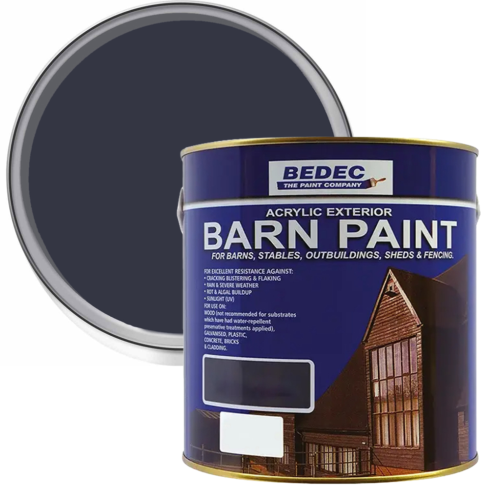 Protect various exterior structures with this versatile and durable Bedec Barn Paint. Resistant to cracking, blistering and flaking, it's a great self-priming paint for barns, outbuildings, and industrial buildings. Its acrylic formula offers excellent colour retention, flexibility, and resistance to flaking and blistering. It can be applied quickly in multiple coats, making it ideal for restoration projects and general maintenance. Developed for barn restoration, this paint has proven to be a superior alternative to traditional tar-based coatings. Colour: Anthracite Grey. Finish: Semi Gloss. Size: 5L.