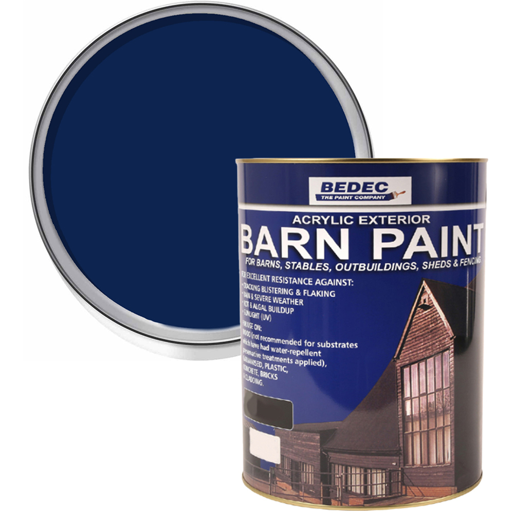 Protect various exterior structures with this versatile and durable Bedec Barn Paint. Resistant to cracking, blistering and flaking, it's a great self-priming paint for barns, outbuildings, and industrial buildings. Its acrylic formula offers excellent colour retention, flexibility, and resistance to flaking and blistering. It can be applied quickly in multiple coats, making it ideal for restoration projects and general maintenance. Developed for barn restoration, this paint has proven to be a superior alternative to traditional tar-based coatings. Colour: Deep Blue. Finish: Semi Gloss. Size: 2.5L.