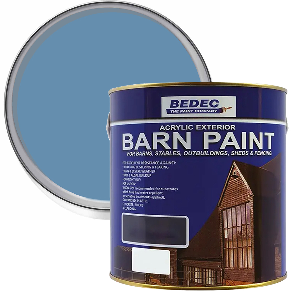 Protect various exterior structures with this versatile and durable Bedec Barn Paint. Resistant to cracking, blistering and flaking, it's a great self-priming paint for barns, outbuildings, and industrial buildings. Its acrylic formula offers excellent colour retention, flexibility, and resistance to flaking and blistering. It can be applied quickly in multiple coats, making it ideal for restoration projects and general maintenance. Developed for barn restoration, this paint has proven to be a superior alternative to traditional tar-based coatings. Colour: Eucalyptus. Finish: Semi Gloss. Size: 5L.