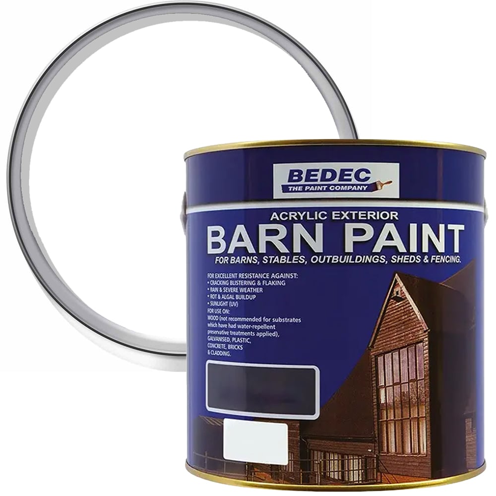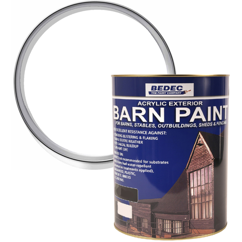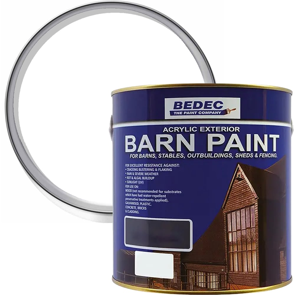 Protect various exterior structures with this versatile and durable Bedec Barn Paint. Resistant to cracking, blistering and flaking, it's a great self-priming paint for barns, outbuildings, and industrial buildings. Its acrylic formula offers excellent colour retention, flexibility, and resistance to flaking and blistering. It can be applied quickly in multiple coats, making it ideal for restoration projects and general maintenance. Developed for barn restoration, this paint has proven to be a superior alternative to traditional tar-based coatings. Colour: White. Finish: Semi Gloss. Size: 2.5L.