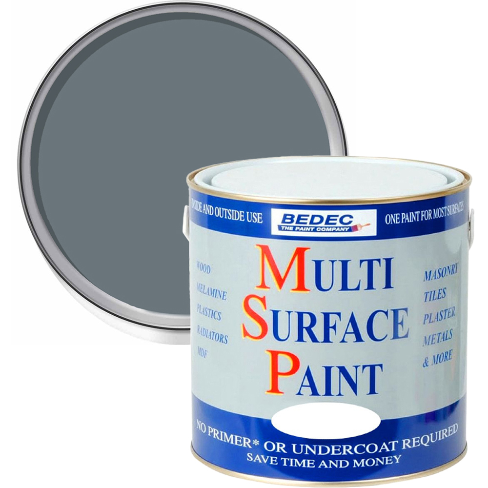 Simplify the painting process with this water-based Bedec Anthracite Gloss Multi Surface Paint. This self-priming and self-undercoating paint can be applied to a wide range of surfaces, making it a versatile choice for any project. Featuring a non-yellowing formula, it's ideal for various interior and exterior surfaces including wood, melamine, plastics, MDF, Mansory, tiles, plaster, metals and more. Colour: Dark Grey. Finish: Satin. Size: 2.5L.