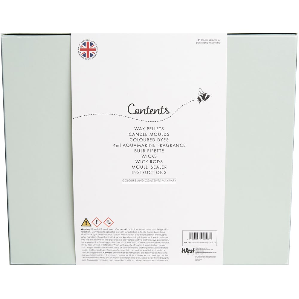 Make your own traditional and floating candles. With everything you need, including full instructions, this lovely kit allows you to craft a selection of different candles that you can keep for around your home or gift as fantastic, handmade presents. A fragrance is included for perfumed candles. Contents include Wax Pellets. Candle Moulds. Coloured Dyes. 4ml Aquamarine Fragrance. Bulb. Pipette. Wicks. Wick Rods. Mould Sealer and Instructions.