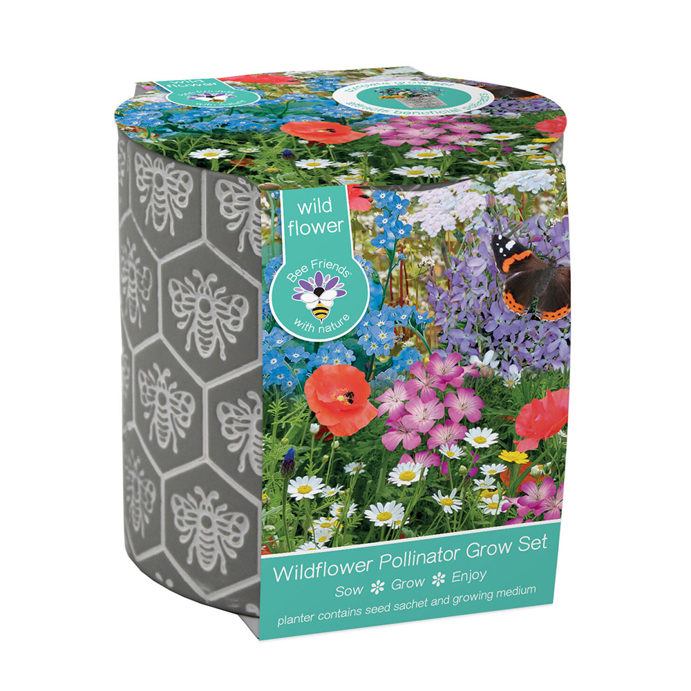 Bee Friends Patterned Ceramic Pot - Grey / Wild Flower Mix
