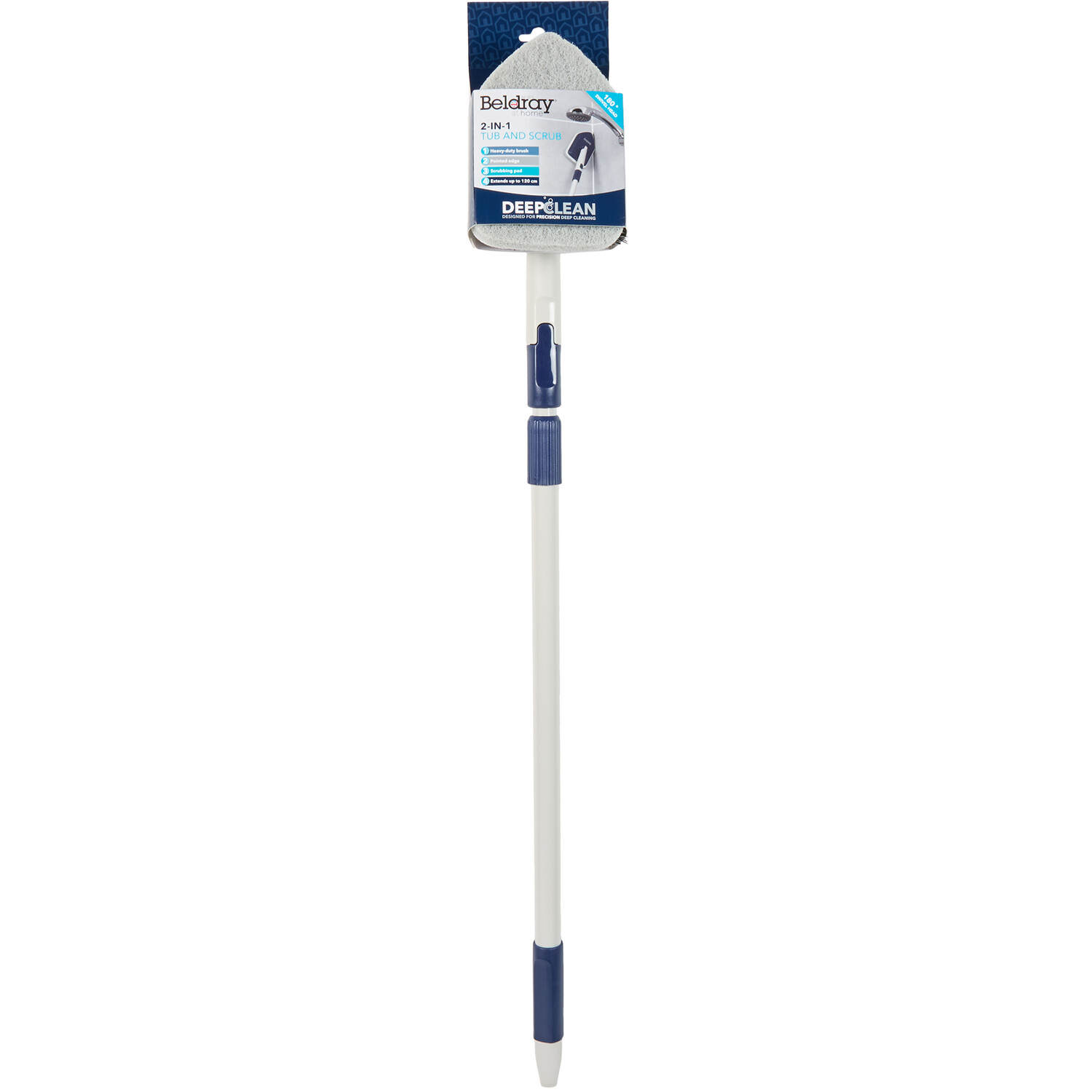 Clean your entire bathroom with this Beldray Deep Clean Bathroom Scrubber. With its pointed edge, you can easily clean hard-to-reach areas to ensure every corner is spotless. Its heavy-duty brush is perfect for scrubbing the tough stains from tiles and grout while the scrubbing pad is ideal for a targeted deeper clean. Comfortable to use, this brush is designed with an extendable handle up to 120cm to cover any corner in the most hassle-free way.