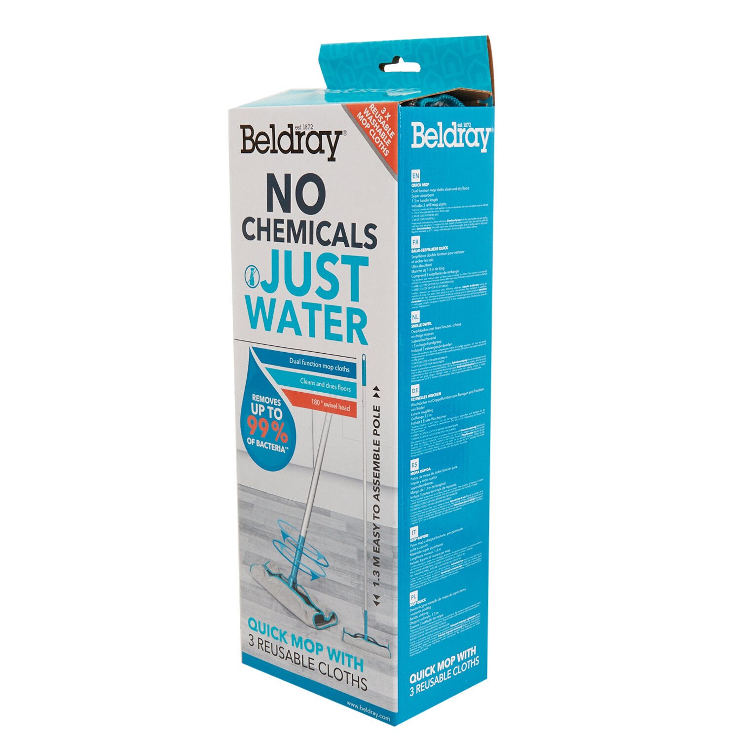 The Beldray No Chemicals Flat Mop and Refill is a powerful cleaning solution perfect for efficient floor care. This mop features cotton pads that clean hard surfaces, just by adding water. Easy to use, the extendable handle ensures you don't have to lean or bend. Moreover, the 180-degree swivel head reaches the tight corners for effective cleaning.