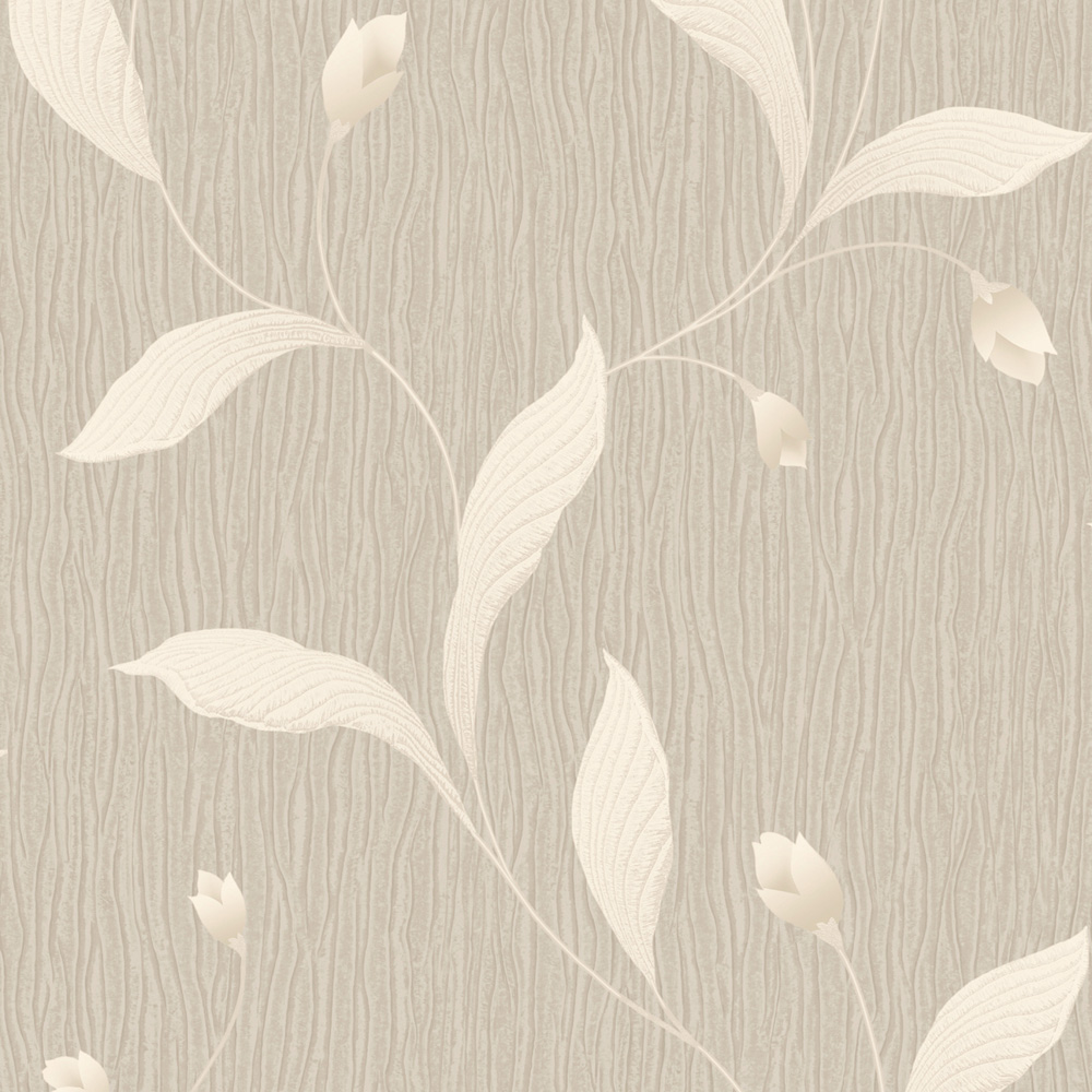 Enhance the decor of your home with Belgravia Decor Tiffany Floral Leaf Trail Beige Wallpaper. It portrays timeless elegance, featuring a traditional floral leaf design set on a deeply textured background. It is easy to paste the paper application. This is a scrubbable wallpaper.