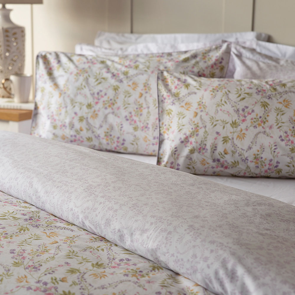 Kira is an elegant, floral design featuring a soft mix of colours typical of a vibrant bouquet of flowers. It has a fun, garden-like feel that is fresh, calming, and soothing. It is finished in a lilac piping detail for a smart and styled finishing touch. Crafted on cotton-rich fabric, which combines the softness and breathability of cotton with the durability and ease of care of polyester. Comfortable, practical, and stylish for everyday use.