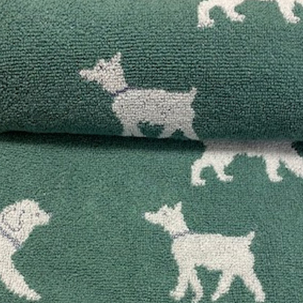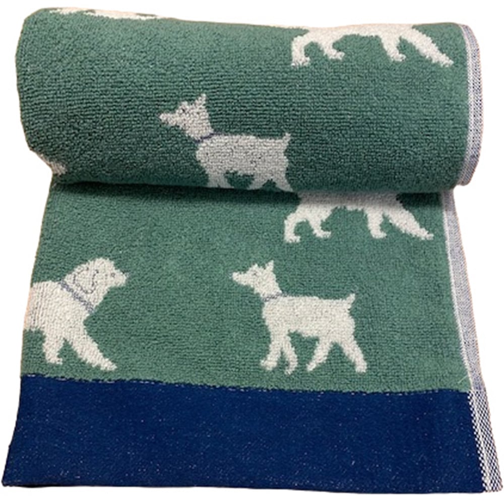 Accessorise your bathroom with this simplistic yet chic Bellissimo Bath Sheet. Made using 100% Turkish cotton, it comes in green with a dog pattern involving various dogs in different styles dotted around the towel. The sheet has a thick contrasting navy flat border along the bottom of the sheet. Machine-washable for easy cleaning, it will make a fun addition to your bathroom.