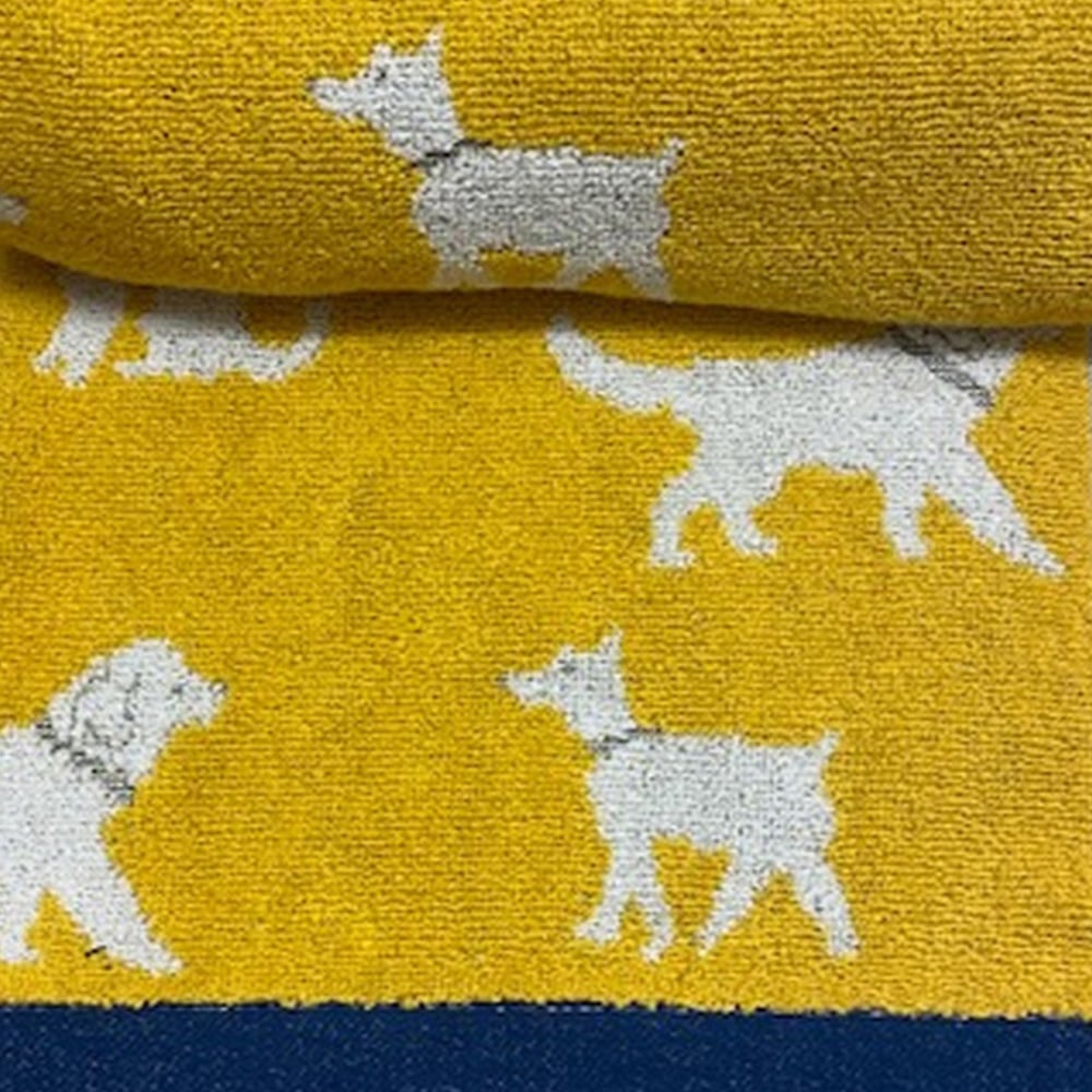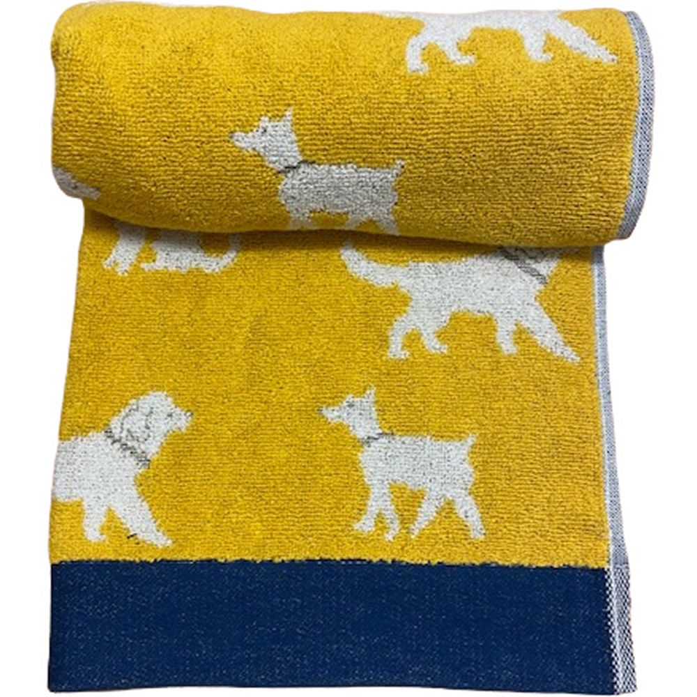 Accessorise your bathroom with this simplistic yet chic Bellissimo Bath Sheet. Made using 100% Turkish cotton, it comes in ochre with a dog pattern involving various dogs in different styles dotted around the towel. The sheet has a thick contrasting navy flat border along the bottom of the sheet. Machine-washable for easy cleaning, it will make a fun addition to your bathroom.