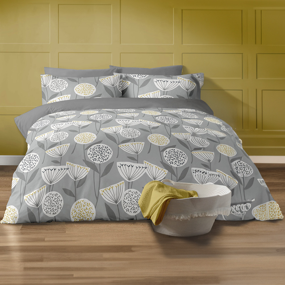 Give a touch of classic style to your bed with this Bellissimo Retro Scandi Duvet Set. Including a duvet cover and a matching pillowcase, this retro-style floral duvet set comes in grey with splashes of ochres and whites to catch the eye and a darker grey reverse to give a contrast look. Being made from Easy-care polycotton, it is super soft and machine-washable for easy cleaning! Size: Single.