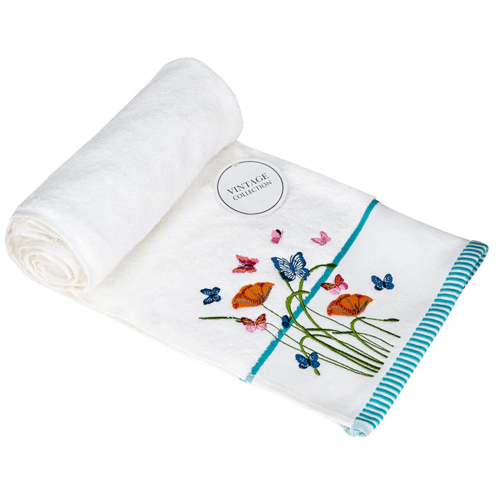 Bellissimo Soft Turkish Cotton White Butterfly Bath Sheet