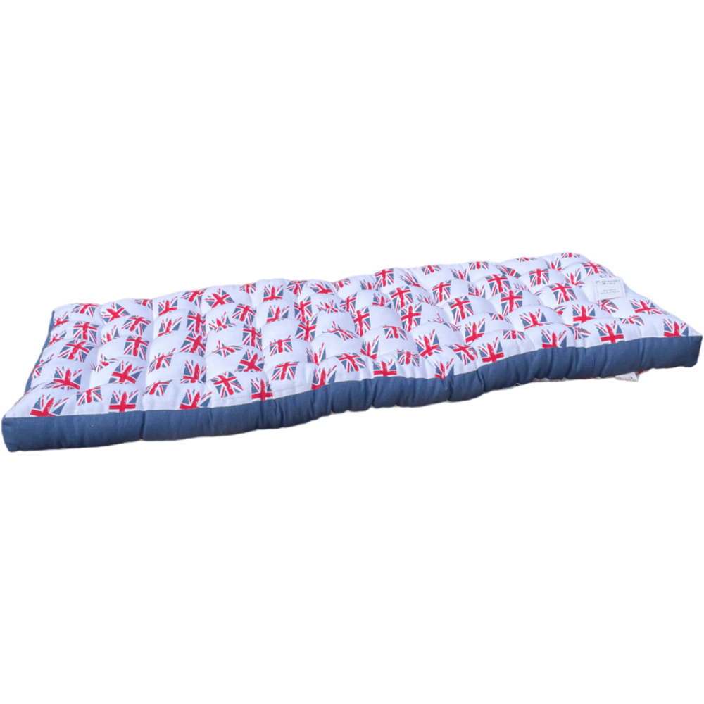 Make your outdoor bench more comfy with this Bellissimo Bench Pad. Approximately 108cm in length, this pad comes with a 100% cotton case and has a blue gusset boxed edge for extra comfort. This bench pad has a white background with a Union Jack flag print.