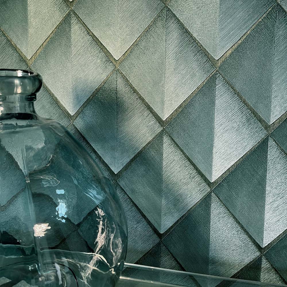 A luxurious Italian paste-the-wall wallcovering which exudes modern elegance, this refined vinyl design has a tactile texture and lustre sheen finish. Mojo has a stylised trellis design with feathered diamonds, making an almost three-dimensional effect.
