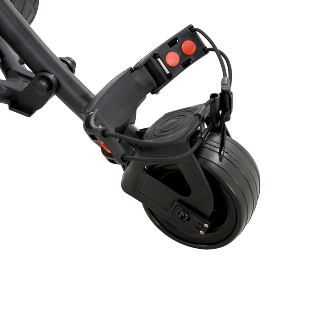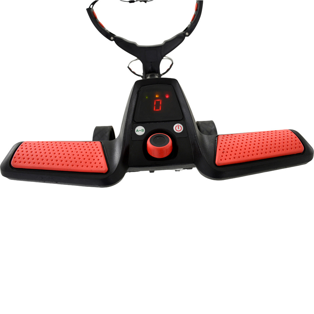 Featuring a 200W motor, this Ben Sayers 12V Trolley in black and red will tackle even the steepest of slopes. Available in 18-hole model, the lithium batteries have a life span that is up to five times longer than a traditional lead-acid battery. Its lightweight aluminium frame ensures easy transportation. The trolley is fitted with a nine-speed control dial, along with a pre-set distance function which allows you to send your trolley forward by 10m, 20m or 30m. The unique memory feature allows you to pre-set your required speed. Additionally, it is fitted with an automatic cut-off charger to prevent the battery from overcharging. The trolley comes complete with a free accessory pack worth over £100 and includes an accessory station, umbrella holder, scorecard holder, drinks holder, rain cover and a carry bag. Plus, the trolley comes with a one year warranty for added peace of mind.