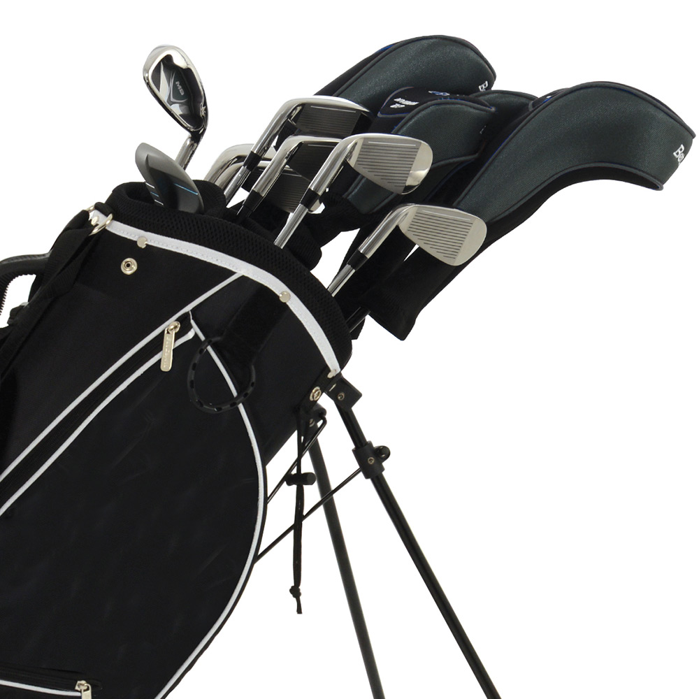 This Ben Sayers M8 6 Club Package Set offer the same high-quality M8 package sets in a six-club option. The set includes a driver (10.5-degree), 23-degree hybrid 7-iron, 9-iron and SW Mallet putter. The men’s sets include graphite shafts in the woods and steel shafts in the irons. The M8 six-club package set comes with a premium stand bag in black with a six-way divider top cuff and five spacious pockets, including a velour-lined valuables pocket and an insulated cooler pocket.