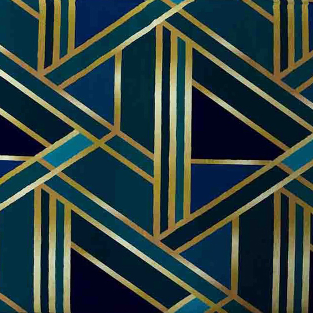 Benjamin Tate Design Gold and Teal Geometric Pattern Bath Mat 50 x 80cm