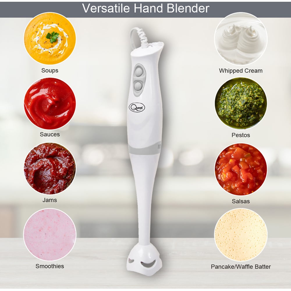 Get the ultimate kitchen companion with the Benross 2 Speed Stick Blender, a compact handheld 200W food blender that will revolutionize the way you cook. With this device, you can create the perfect consistency for sauces, soups, and smoothies with ease. The blender features two separate speed settings - low and high - giving you complete control over your culinary creations. The ergonomic handle ensures maximum comfort during use, while the hanging loop allows easy storage. Cleaning is a breeze thanks to the quick-release detachable plastic mixing stick. And with a one metre long electric cord, you'll have plenty of space to move around your kitchen. Upgrade your cooking game with this powerful and versatile hand blender today. Dimensions: 7 x 7 x 39cm.