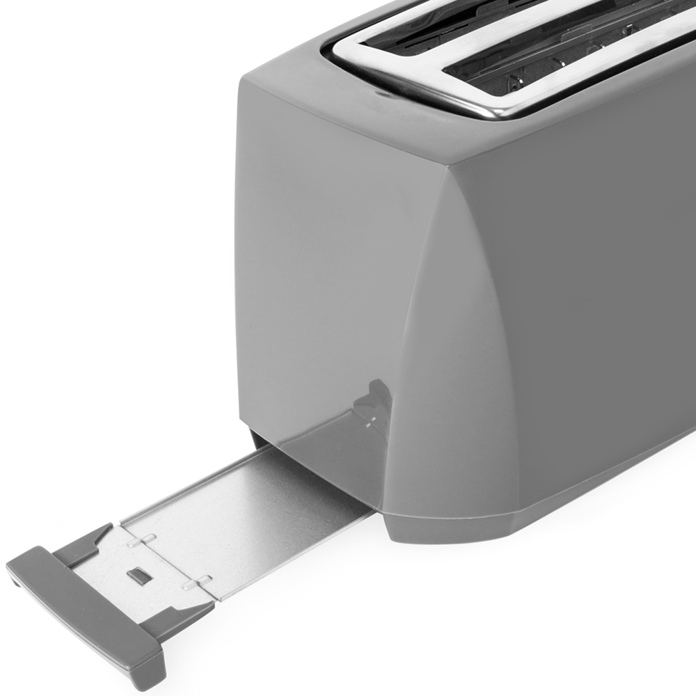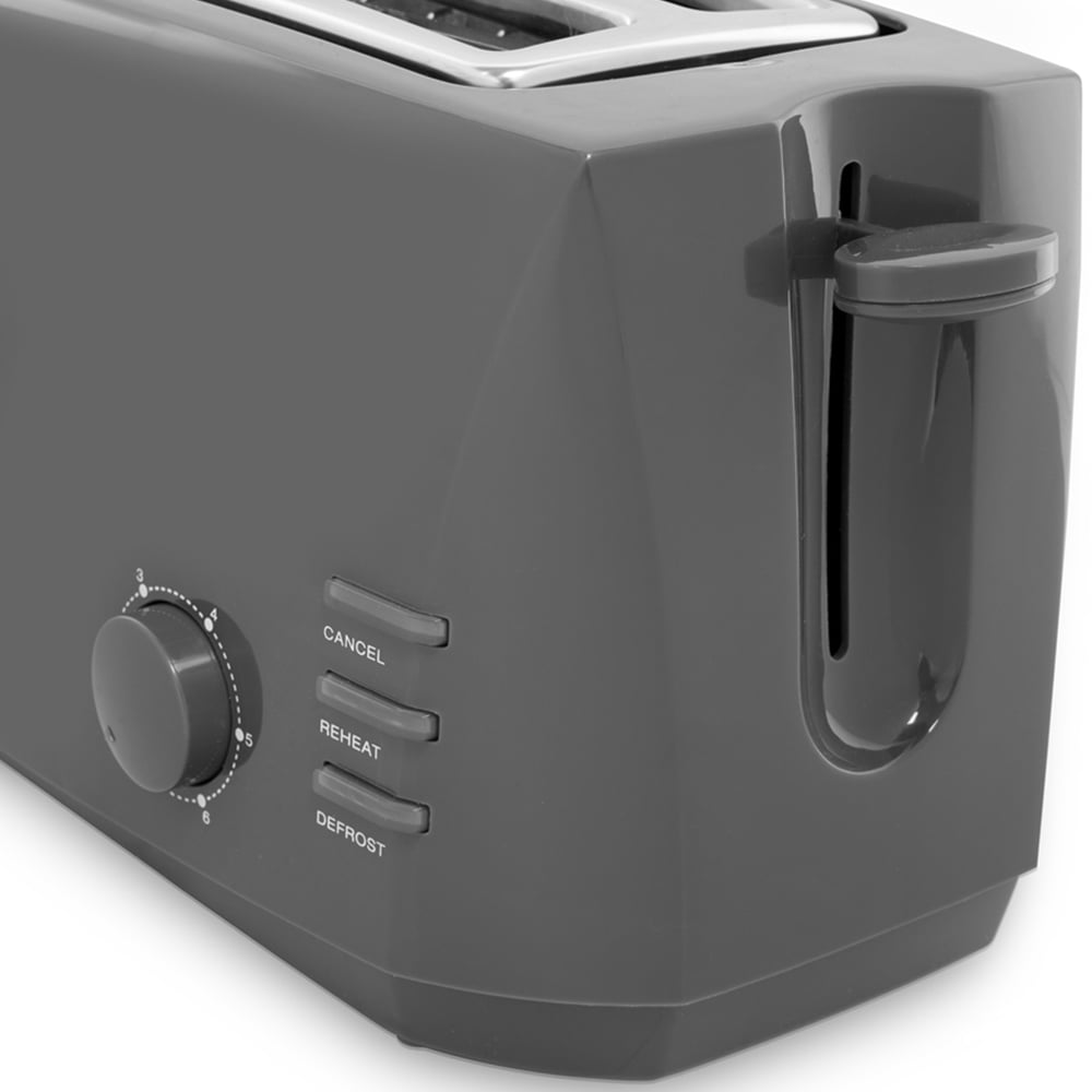 Combining modern design with practical performance, this Benross Grey 4 Slice Cool Touch Toaster 1400W with extra wide slots makes a great addition to any home and is ideal for mid to large-sized families. Featuring a variable browning control with six settings, you can set the toaster to get your perfect coloured toast every time or alternatively use the cancel button mid-toasting to check on the colour. The reheat function allows you to easily warm up toast that has cooled down, making it perfect for those times when you are busy and miss the toast popping up. The defrost button allows you to toast bread straight from the freezer without the need to leave it defrosting for hours. The toaster’s removable crumb tray makes for easy cleaning, and the integrated cord storage helps keep your worktops tidy and fuss-free. For your safety, the toaster is a cool touch, has non-slip feet and has an anti-jam function for easy toast removal.