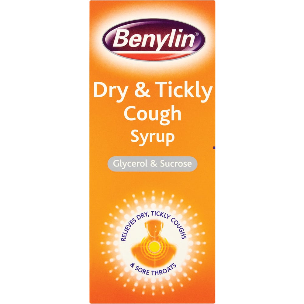 Soothe your throat with Benylin Dry and Tickly Cough Syrup. Perfect for alleviating tickly, dry coughs and soothing sore throats, it helps you feel more comfortable throughout your day. With glycerol and sucrose to soothe and lubricate the throat, it helps you feel more like yourself again.