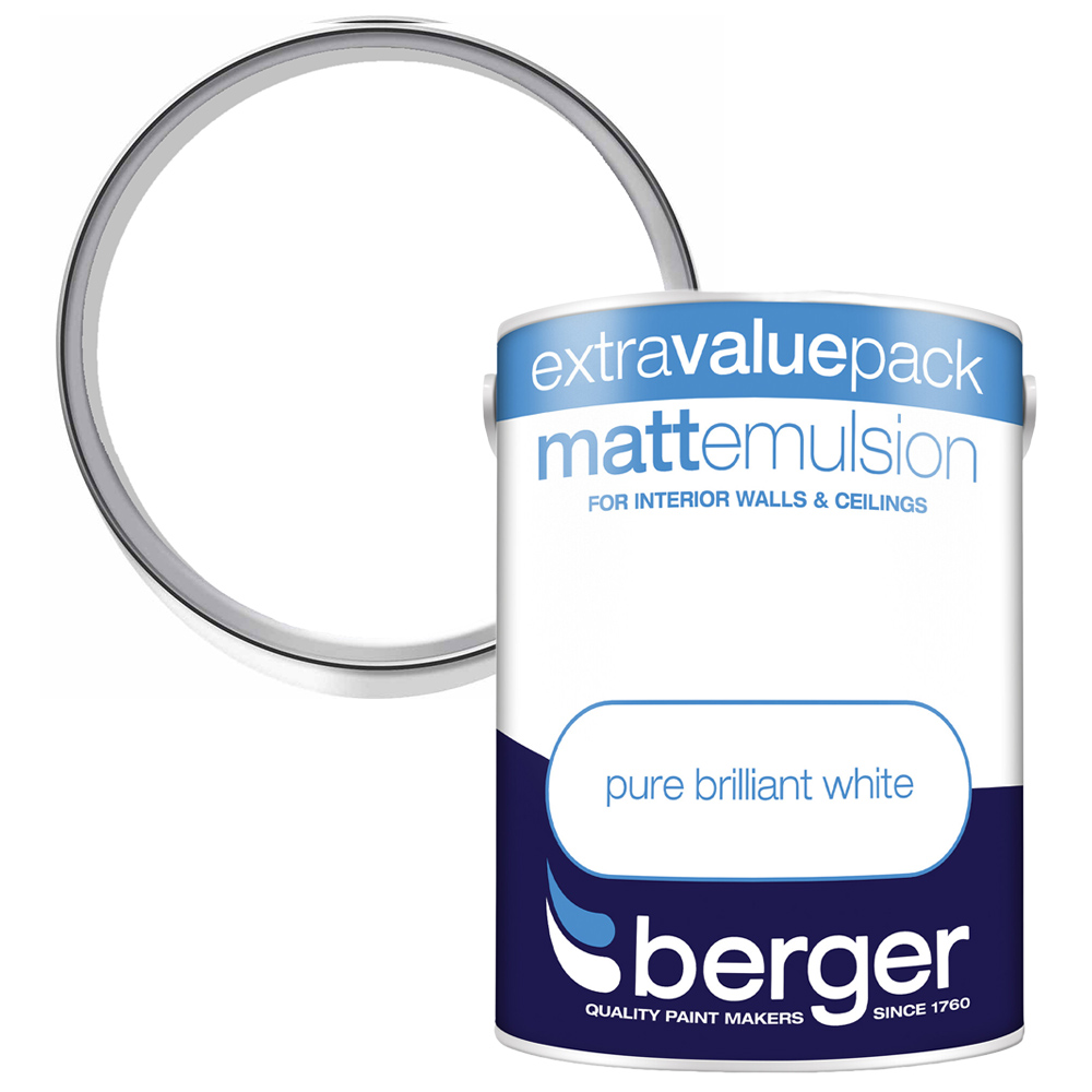 Berger Matt Emulsion Pure Brilliant White is a water-based interior paint that gives a flat matt finish to walls and ceilings. The soft finish with minimal reflection and shine makes it ideal for disguising imperfections and uneven walls. Offering great versatility, this opaque emulsion is easy to apply and perfect for transforming rooms and spaces throughout the home.