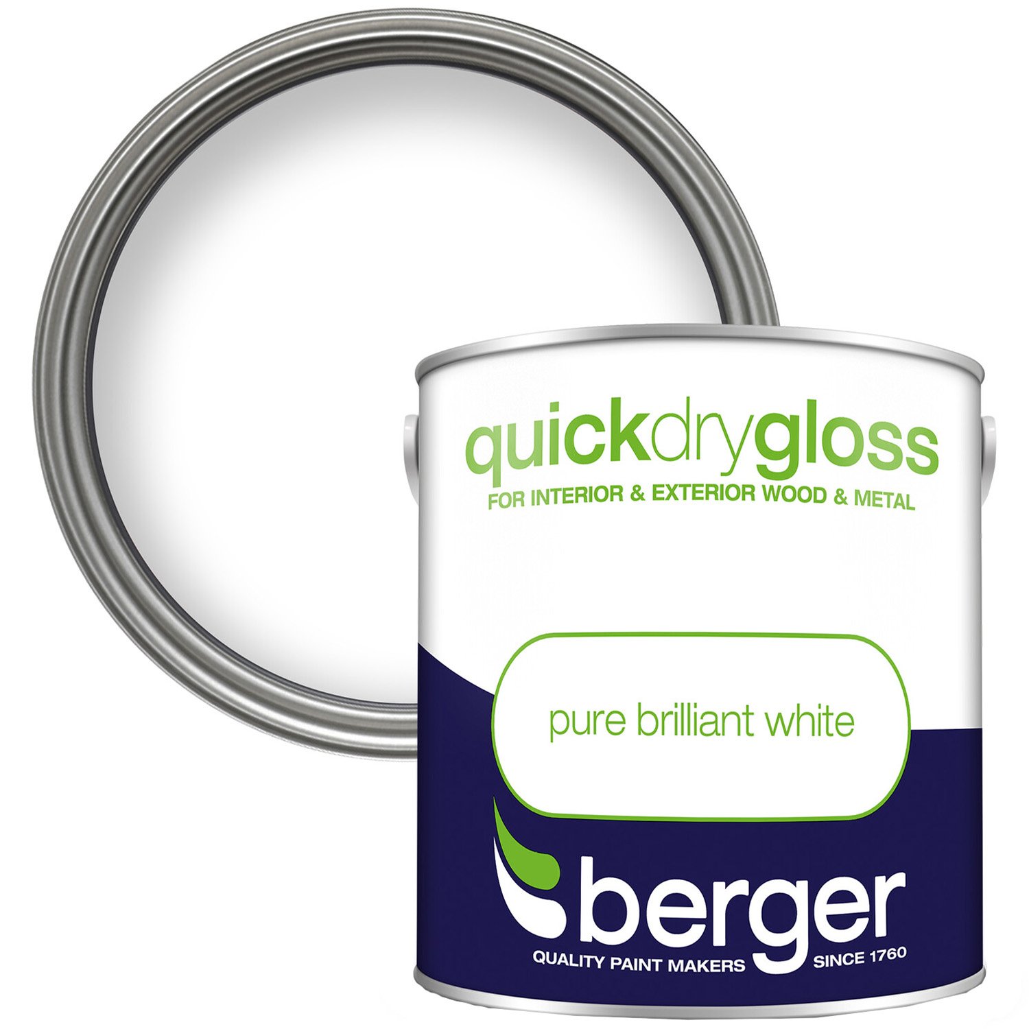 Berger Quick Dry Gloss Pure Brilliant White 2.5L provides a durable, high-sheen finish to interior and exterior wood and metal surfaces in and around the home and garden. Using a water-based formulation, this timesaving gloss is touch dry in just one hour and creates a bright, high-shine finish that resists yellowing – keeping paintwork looking fresh and new for longer. Suitable for both indoor and outdoor use, this multi-surface paint is great for internal doors and skirting boards to garden gates and planters, giving a high-sheen, glossy finish that lasts.