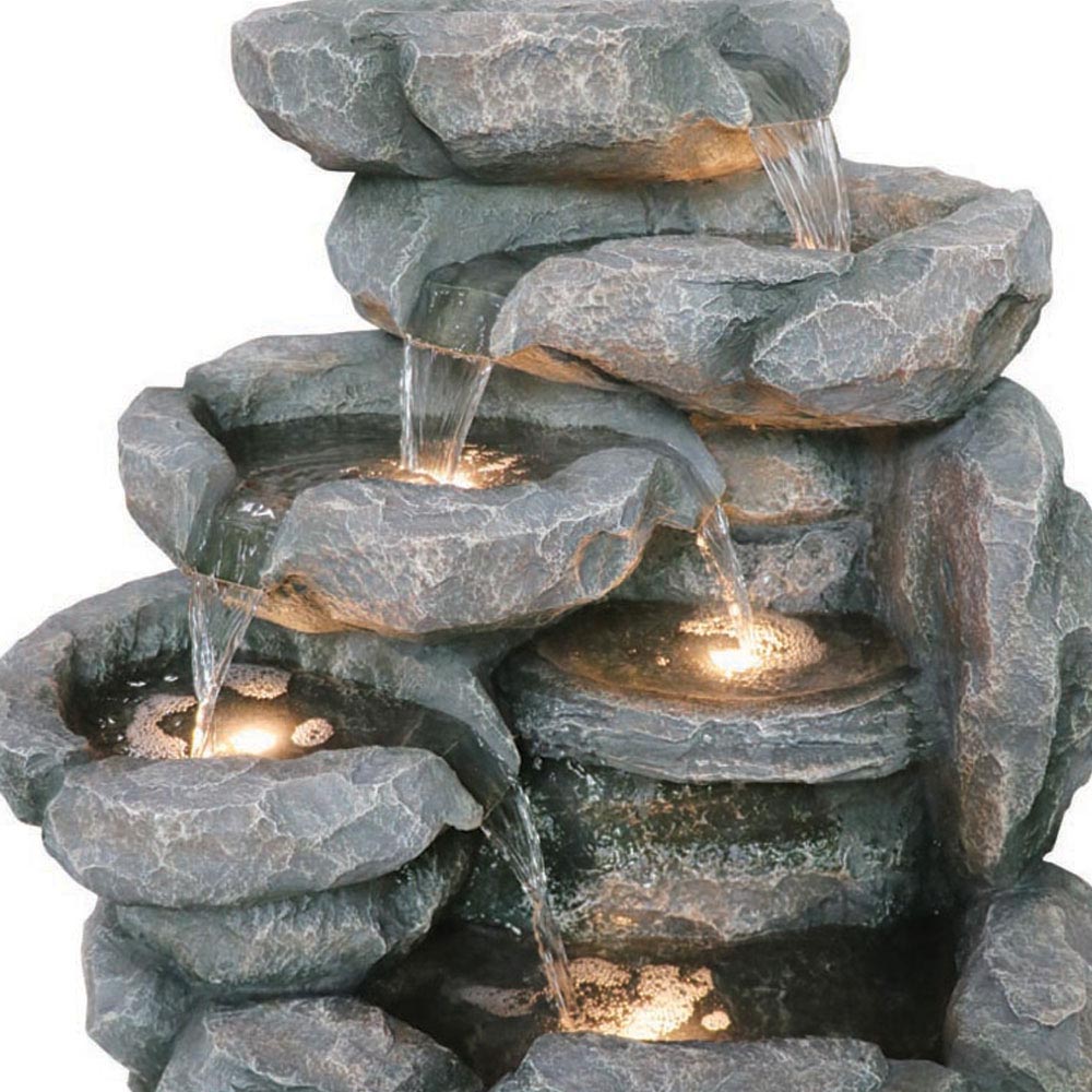 Elevate your garden to create a tranquil atmosphere with this beautifully crafted Cascading Pools Water Feature by Bermuda. Cascading Pools is a fantastic stone effect water feature made of high-quality polyresin that is both light and easy to install. The stone effect garden water feature with pump and lights has been carefully moulded to adopt the appearance of rugged stone and texture that makes the Cascading Pools water feature look very natural in a garden setting. The water feature is made using modern manufacturing techniques meaning this polyresin ornament is both frost and UV resistant, making it ideal for use all year round. The LED lights situated in the ornament create a simply stunning water feature, which is great to watch during the day or night. The Cascading Pools water feature is a wonderful water feature guaranteed to make your garden or patio look great. Plugin the pump and add water. Easy maintenance.