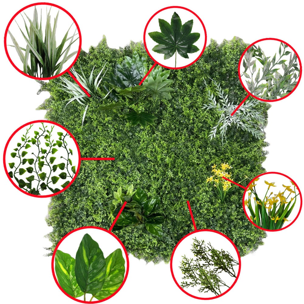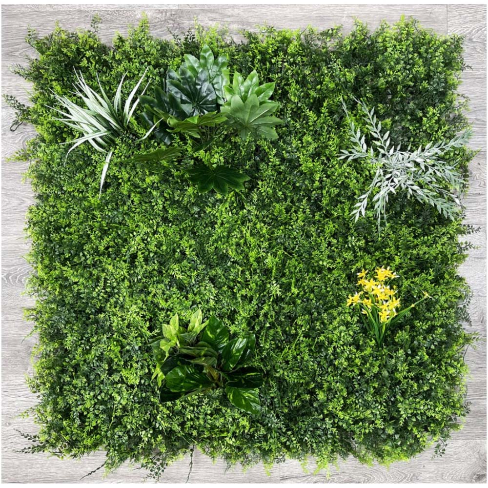 Redefine your space uniquely with the Best Artificial Living Wall Mat 100 x 100cm. This UV-stable and weather-resistant mat is perfect for transforming any indoor or outdoor space. The mat measures 100cm x 100cm (40 x 40 inches) and is meticulously crafted using commercial-grade resin and premium plastic, ensuring durability and flexibility. The lush greenery stands at an impressive 10cm (4 inches) in length, providing a lifelike appearance. The mat offers the look of a real green wall without the hassle of maintenance and can be easily connected to cover larger areas. Moreover, it can be trimmed to fit any size or shape and can be mounted on various surfaces, including curved ones, for instant privacy with dense coverage. With one mat covering one square meter, the mat requires no maintenance, making it a convenient and long-lasting solution.