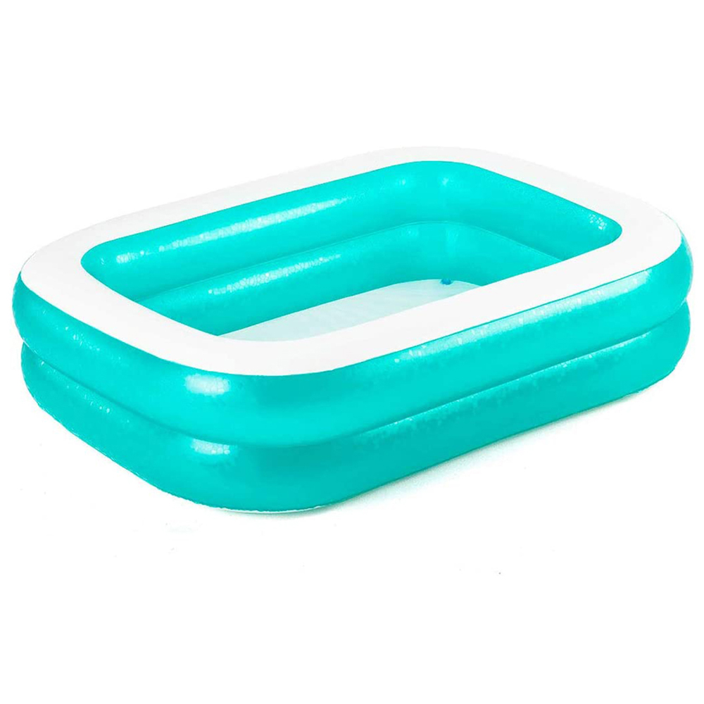 This Bestway Rectangular Family Paddling Pool 450l is the perfect solution for cooling down together in the summer sun. Designed for easy setup, this pool requires no tools; simply inflate and fill to enjoy its 450-litre water capacity. Featuring two equal rings that inflate to uphold the pool sides, it boasts extra-wide sidewalls for added stability. Measuring 2.01m x 1.50m x 51cm, it offers ample space for family fun. The pool includes two interlocking quick-release drain valves for effortless draining and deflation, making storage a breeze. The complete set comes with a textured pattern outer wall and a heavy-duty repair patch for longer-lasting use. Enjoy a refreshing and fun-filled summer with this convenient and durable paddling pool.